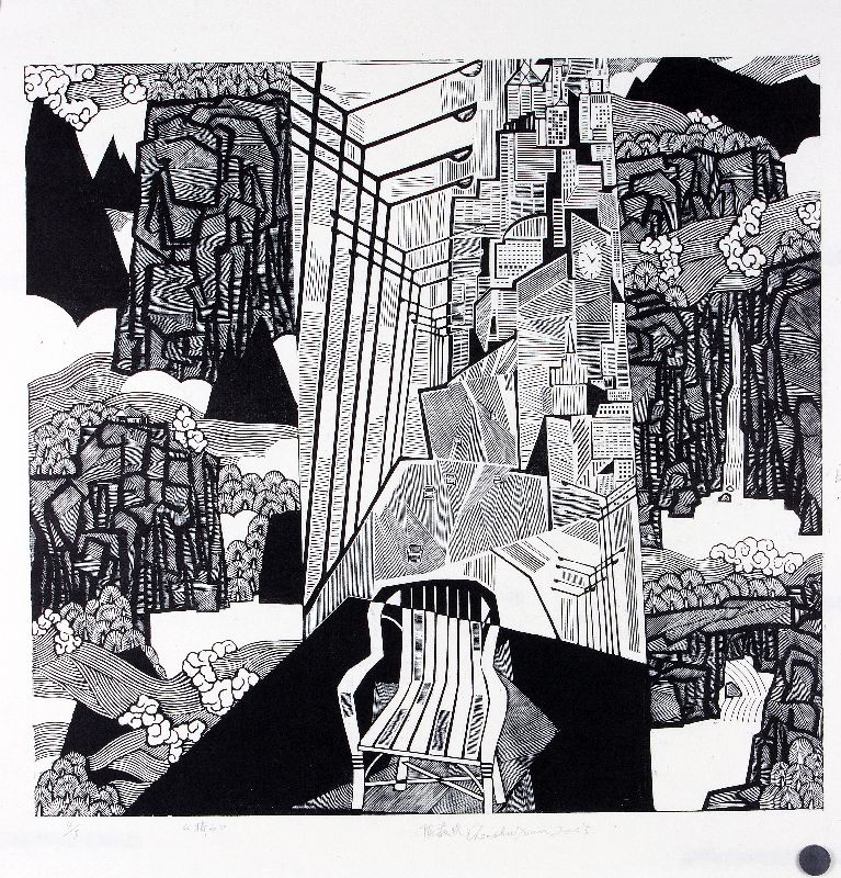 陈菽现《悠然南山·之二》 木版 90cm×85cm 1994年作