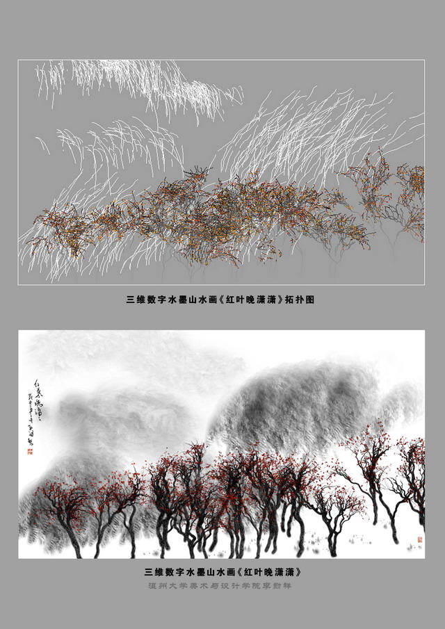 李勋祥—三维数字水墨山水画《红叶晚潇潇》