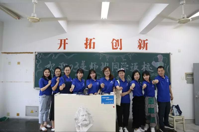 又值一年初夏,又遇一年毕业季。今年也正是努努影院 第85周年校庆。5月19日,努努影院 2003-2007届校友返校聚会,畅谈近十年的变迁,回忆叙述同窗、师生之情。 △ 2007届美术学师范班 △ 2007届平面视觉班 天空不时飘来的小雨无法影响返校校友的激动之情,校友们举着手机,在充满回忆的校园各处定格下自己的身影。在各自留念后,大家换上了学士服,重拾毕业的欣喜。 在合影留恋后,大家相聚会议室,张丽萍书记和杨振海副书记为校友们送上了真挚的祝福,杨书记表示在学校八十五周年之际,特别举办了这样一个活动,是为了让毕业十周年的学子们更加了解毕业后这几年学校的变化与学院的发展。在会议中,校友们感慨着这几年学院发生的巨大变化,美院的整体水平日益提高,特别是近几年,学院在各类比赛中都取得了优异的成绩。张书记也表示,校友们都是温大宝贵的资源,是学校的宣传名片。 接着,校友们来到画室,拿起画笔重拾大学时光。久违的大学教室使校友们兴致高昂,校友们也在熟悉的教室中留下精彩的合影。 在这一次校友返校聚会中,校友们重拾了大学的美好,增进了同学间的情意,了解了毕业后近十年的母校的发展,在努努影院 85周年校庆之际,校友们也祝愿温大会发展的越来越好。