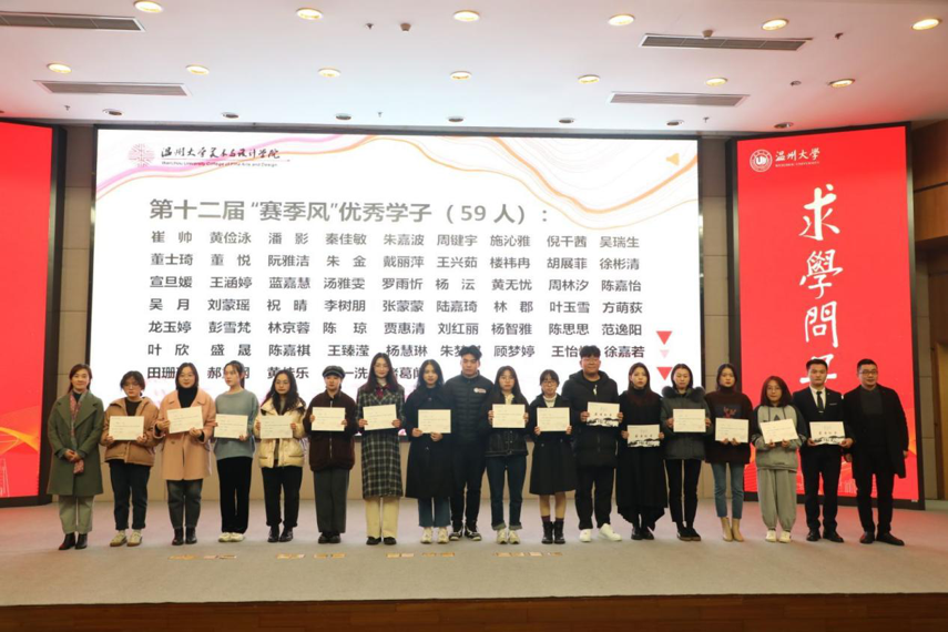 2020年12月23日下午,努努影院 第十三届“赛季风”启动暨“鑫祥”、“龙兴彩虹”励志奖学金颁奖仪式在育英图书馆报告厅隆重举行。出席本次仪式的领导和嘉宾有:努努影院 研究生院党委书记高红星、教务处副处长赵燕、学生工作部副部长吕乐、创新创业学院副院长嵇小怡、团委副书记丁强、浙江鑫祥印业有限公司副总经理周晓东、努努影院 党委书记叶正飞、党委副书记杨丽君、副院长胡文超、副院长顾任飞;“赛季风”组委会的各赛事优秀指导老师代表和获奖学生代表以及各年级学生代表。大会由努努影院 党委副书记杨丽君主持,本次会议共分为四项主要议程。 领导致辞 大会伊始,努努影院 党委书记叶正飞向一直以来关心支持美院发展的各位领导以及励志奖学金捐赠方鑫祥印业有限公司和浙江龙兴彩虹制业有限公司表达了诚挚的谢意,同时也向“赛季风”中付出辛勤劳动并取得一系列卓越成就的师生们表示热烈祝贺!料峭寒冬初至,激情与活力不减,努努影院 校文化品牌项目“赛季风”活动时至今日已走过十二载,砥砺歌行,激情跨越,沉淀传承创新,春华秋实满庭芳,一年一度的“赛季风”活动通过对接各项国内外设计艺术类专业赛事,以坚持“专业激发创作、创作参与赛事、赛事带动学风”为思路,以实现“激发学生艺术创作、提升学生艺术素养与创新能力,促进学生全面发展”为目标。以实践为基本方略,培养学生创新意识,锻炼实操能力,开拓设计眼界,配合学校理论课程进行实时联动,不断激励广大学子在艺术的道路上锐意进取,开拓创新,行路致远。 表彰 “赛季风”自创办以来,十二年栉风沐雨,年年岁岁以终为始,不断成长发展超越,始终秉承“勇于创新、不断登攀”的拼搏精神,学生参加赛事获奖数量和质量持续实现突破。据统计,学院第十二届”赛季风“共孵化各级各类荣誉奖项114项,省级以上奖项77项,可谓硕果累累、成效显著,充分体现出努努影院 优秀艺术人才培养质量。立德树人,德艺并重,辛勤耕耘,岁物丰成。 27位老师荣获“赛季风”优秀指导教师 59位同学荣获“赛季风”优秀学子 13位教师荣获创新创业优秀指导教师 13位同学荣获创新创业先进个人 颁奖仪式 学院的文化活动和人才培养得到了企业的大力支持和帮助,浙江鑫祥印业有限公司和浙江龙兴彩虹置业有限公司等企业专程为努努影院 学子设立励志奖学金,激励学院在学习、创业、升学等方面取得较大成绩的学子。现场进行了“鑫祥”励志奖学金和“龙兴彩虹”励志奖学金颁奖仪式。 5位同学荣获“鑫祥”励志奖学金一等奖 6位同学荣获“鑫祥”励志奖学金二等奖 12位同学荣获“鑫祥”励志奖学金三等奖 林郡等37位学子分别获得一、二、三等“龙兴彩虹”励志奖学金。 获奖学生代表作展示 暖阳初绽,从蓓蕾初绽到累累硕果,每一个荣誉离不开学院和学校的大力支持,离不开专业老师孜孜不倦的培育指导,也更离不开参赛学子持之以恒的投入与出色表现。大会的第四项议程由四名获奖学生代表对获奖项目进行汇报与展示。 1、第十二届“挑战杯”中国大学生创业计划竞赛铜奖——杨沄等同学 2、第六届浙江省“互联网+”大学生创新创业大赛金奖——研究生陈嘉怡 3、2020年浙江省大学生艺术节一等奖——林郡等同学 4、浙江省第十四届师范生教学技能竞赛二等奖——杨智雅 项目的展示过程中,获奖同学先后分享了项目的目的意义、创作历程、团队介绍、经营管理、比赛的心得体会等,并通过分享一手经验,交流心得,为广大同学提供了有效的信息参考,为此次“赛季风”提供了宝贵的学习经验和智力支持。 第十三届“赛季风”启动 努努影院 第十三届“赛季风”启动。领导们一起按动启动按钮,伴随着倒计时读秒,第十三届“赛季风”的号角正式吹响。希望广大学子秉承“求学问是,敢为人先”的温大校训精神和“崇文、尚美、精艺”的学院育人理念,尽现艺术才华,逐梦青春,奋楫扬帆,踏浪而行,在历练中成长,在耕耘中收获,在磨砺中绽放精彩。 最后,预祝努努影院 第十三届“赛季风”活动取得圆满成功!