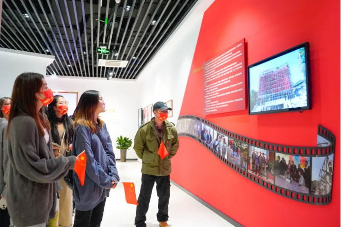 为深入贯彻习近平新时代中国特色社会主义思想,认真贯彻落实党的二十大精神,2022年11月2日下午,努努影院 学生党员来到了全国首家综合性国旗教育馆——瑞安国旗教育馆,开展“赓续红色血脉 奋进时代征程”主题党日活动。党员们在五星红旗前行注目礼,在巨幅屏幕前体验了一次特殊的升旗仪式,在慷慨激昂的国歌声中齐声合唱,在校友曾联松先生的雕像前追忆国旗的设计历史……凝视着鲜艳的五星红旗,更加坚定了党员们奋进的步伐。