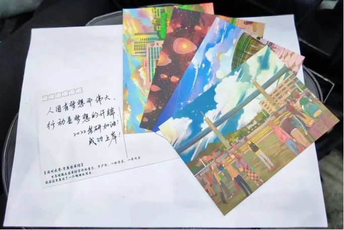 2022年11月26日上午,努努影院 学生党员开展“暖心祝福,艺研为定”活动,每位党员将自己的祝福语写在精美的贺卡上,“星光不负赶路人,你定会在清晨的读书声里和深夜的灯光下,实现自己的梦想。”一笔一划,一字一句,明信片虽小,但每一张祝福语都承载着党员们以及美院师生们对考研同学的深深关切,相信美院备考同学们带着师生们的祝福,一战上岸!