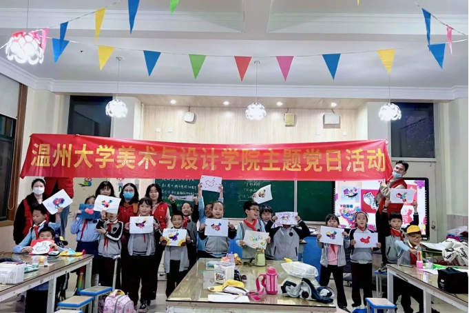 2022年11月25日下午,努努影院 学生党员来到温大附校开展了“以美育人,以红润心”美育拓展活动,课堂以“两岸一家亲,共圆中国梦”为主题,授课党员们通过生动的教学,引导小朋友们一步步理解和感悟:中国是由五十六个民族组成的多民族国家,我们14亿人一起生活在神州大地上,用自己的汗水和智慧去建设这片神奇的土地,因此我们要共同守护这来之不易的和平生活和安宁岁月。