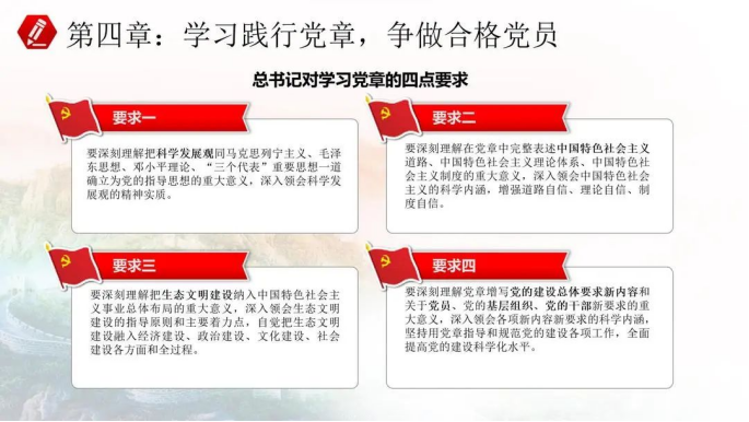 《中国共产党章程》全面阐述了我们党的性质、指导思想、理想目标、基本要求,党员义务等党的路线方针政策和党的规定,纵观党的《中国共产党章程》,从总纲到党徽党旗,共有十一章五十三条,全面阐述了新时期共产党员的权利、义务,重点对党的各级组织、党的干部、党的纪律等都做了鲜明的阐述,从而使我有了更深的理解,受到了一次党的政理治论和基础知识教育。作为积极分子的我,更坚定了自己的理想信念和早日加入中国共产党的决心。