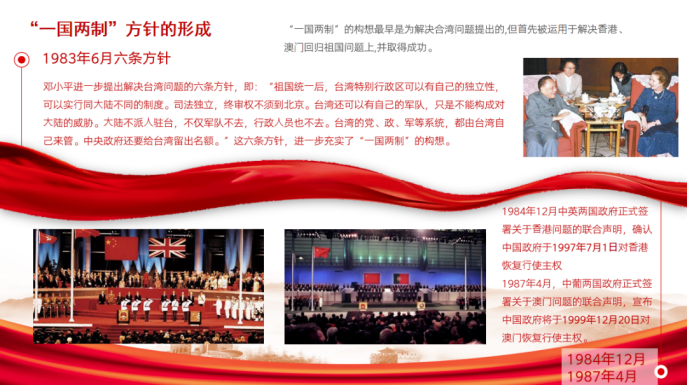 蓦然回首,百年风华正茂,百年矢志不渝。这一百年来,我们的党历经磨难,走过绿茵花溪,也踏过枯骨万里。通过这次微党课,我更加清楚地了解到了中共十二大、十三大的历史,以及一国两制的伟大构想,“一国两制”的构想既体现了实现祖国统一,维护国家主权的原则性,又充分考虑到台湾、香港、澳门的历史和现实,体现出其高度的灵活性。同时我也意识到,我们应与时俱进,不断认识规律,不断推进理论创新、实践创新、制度创新以及其他各方面的创新。