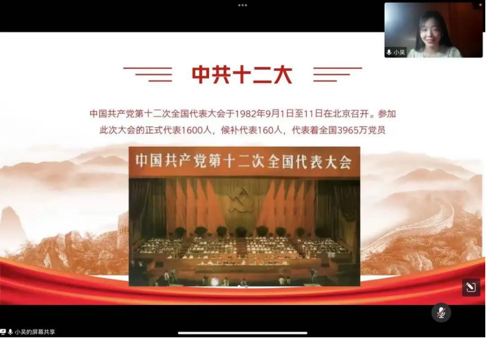 本期微讲堂由学生第三党支部党员吴佳怡进行宣讲建设有中国特色的社会主义——学习中共十二⼤、⼗三⼤。中共十二大提出了党在新时期的总任务,中共十三大提出了党在这个阶段的基本路线,并根据理论和路线确定了全面改革的基本方针和行动纲领,确定经济发展“三步走”战略部署。