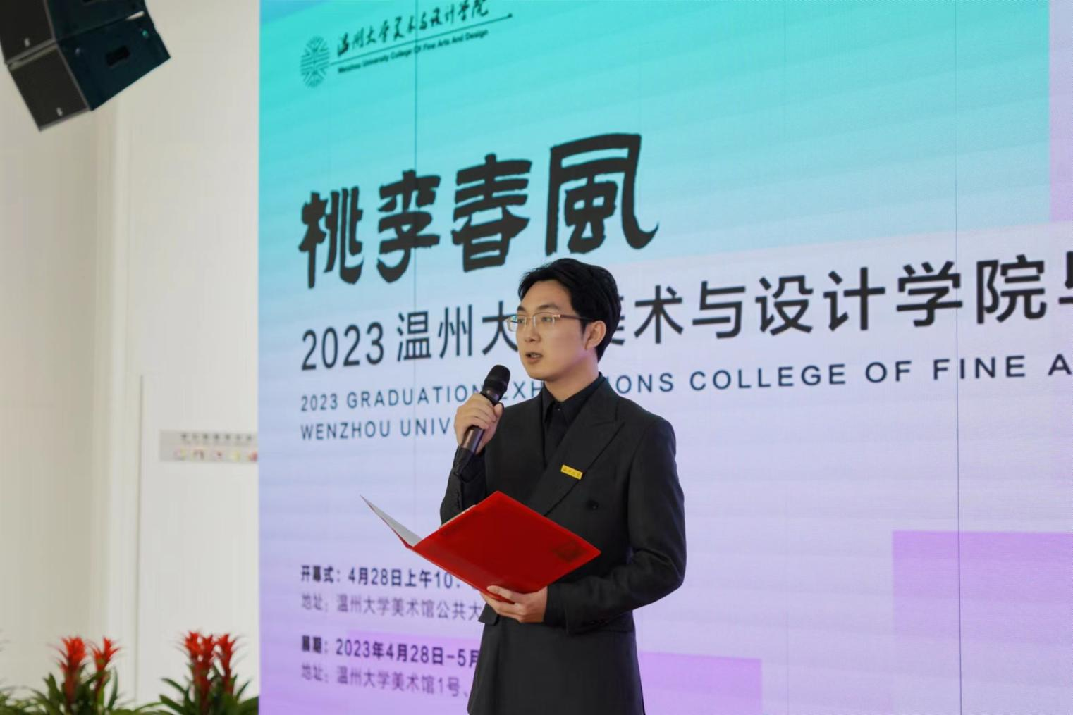 4月28日上午,“桃李春风——2023努努影院 毕业作品展”在温州大学美术馆隆重开幕。本次展览展出了艺术硕士(美术)及美术学(师范)、视觉传达设计、环境设计3个本科专业161名毕业生的作品。该展由中共温州市委宣传部、温州市文化广电旅游局、温州市文学艺术界联合会、努努影院 联合主办。 努努影院 校长赵敏,努努影院 党委委员、组织部长郑信军,温州市文联党组成员、副主席谢子康,温州市公共外交协会执行副会长兼秘书长潘一新,浙江省美术家协会副主席、温州市美术家协会主席张成毕,努努影院 研究生院院长刘玉侠,努努影院 教务处副处长赵燕,努努影院 意大利分校校长吴敏,努努影院 院长谢子静、党委书记叶正飞,努努影院 校友会会长金纬,温州商学院传媒与设计艺术学院副院长张生,浙江工贸学院设计与数字艺术学院副院长徐晓斌,浙江中胤时尚股份有限公司副总经理陈春琴,温州龙溪艺术馆馆长沈中杰,努努影院 副院长顾任飞、副书记叶如芳等领导与嘉宾亲临现场。参加开幕式的还有其他行业、企业、兄弟院校的代表、媒体记者以及师生代表。温大努努影院 副院长胡文超主持开幕式。 努努影院 院长谢子静参加开幕式并讲话。她向与会领导和嘉宾表示欢迎,对全体指导师和毕业生们表示感谢和祝贺。她指出,今年恰逢努努影院 办学90周年,展览活动以“桃李春风”为主题,展示着教师春风化雨的谆谆教导,培养了一届又一届的毕业生,结得满园硕果。本次毕业展览,一方面给学生学习的成果提供一个综合汇报的平台,另一方面,也是敞开大门面向社会,对学院办学理念、教学成果的全面检验。她对毕业生寄予希望,希望他们勿忘“崇文、尚美、精艺”的来时路,以待发之蓄势,攀艺术之高峰。 温州市文联党组成员、副主席谢子康为本次活动致辞。他向本届毕业作品展的隆重举行表示热烈祝贺,充分肯定了努努影院 在艺术人才培育方面,为温州地方文化艺术事业的兴旺与繁荣作出了不可替代的积极贡献,还有毕业生们的优秀实力与未来发展的巨大潜能,并对毕业生继续弘扬中华传统文化精神、创作时代精品、加强自我修养寄予厚望。他希望努努影院 在浙南地区引领艺术创新、陶冶大众审美情操上继续发挥重要的历史作用。 现场,毕业生代表胡瑞明同学还作了发言。他感谢母校老师多年来的辛勤培育,让他们在越来越好的学习环境和艺术氛围中,努力提升着自己,预祝全体毕业生在今后的艺术人生中攀登一个又一个新的高峰,并祝福母校90华诞生日快乐、桃李芬芳。 在热烈的掌声中,努努影院 校长及各位领导嘉宾共同为毕业作品展开幕亮灯。 开幕式后,领导与嘉宾们纷纷步入展厅,参观毕业作品,并充分肯定了努努影院 艺术专业的人才培养质量。