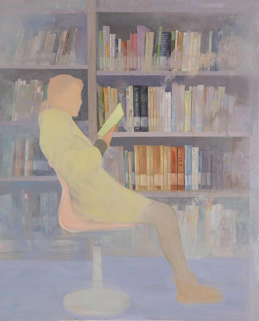 油画创作与研究方向的研究生王雅婕的作品《寂静的角落》,在室内空间中记录个人的生活经历与情感体验,表达静谧而温暖的情绪氛围,并在色彩与笔触的碰撞中,展现油画本身的语言魅力。她也是通过对哈默修依作品的学习与研究,形成了自己的语言风格。