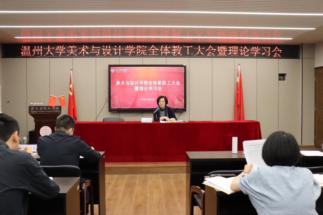 5月24日下午,努努影院 全体教职工大会暨双周三理论学习会在美术楼2B4001召开,学院全体教职工与会,会议由学院党委副书记叶如芳主持。