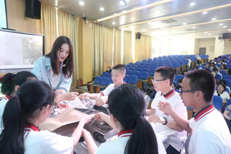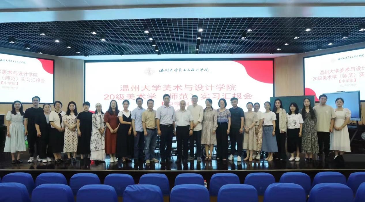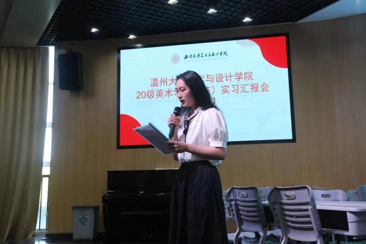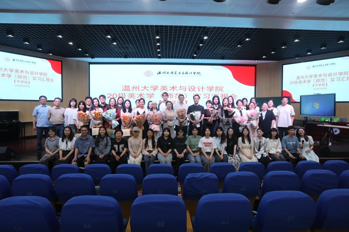 2023年5月29日下午,努努影院 20级美术学(师范)实习总结汇报会在温州第二实验中学举行,努努影院 苏步青学院党委书记应中、执行院长姜锐、努努影院 副院长顾任飞、努努影院 教师培养基地主任胡珏等领导和嘉宾,来自温州第二实验中学、温州第二外国语学校、温州市第十二中学、温州市第十九中学、温州南浦实验中学和温州梧田第一中学的校外导师,努努影院 全体实习导师,以及20级、21级本科生、学科教学(美术)研究生共196人参加汇报会。会议由第二实验中学的楼林子老师主持。 活动伊始, 各位嘉宾、老师进行了合影留念,随后顾任飞副院长、胡珏老师对嘉宾的到来表示热烈欢迎,对各位指导老师给予的精心培养表示感谢,同时也肯定了20级实习生在实习过程中的付出。 第一节展示课是由温州第二实验中学实习生代表叶佳慧带来的自编课程《水之道》-梨园风骨寄丹青。课堂以水袖舞作为导入,整堂课的氛围充满中华古典韵味,将水袖与国画水墨纹理相结合,将水拓作品与戏曲人物进行联想创作,让大家眼前一亮。 第二节课是由温州南浦实验中学实习生代表姜景皓带来的七年级课程《北京故宫—千里江山图》。课堂以视频方式导入,带同学走进画中世界,老师从多角度讲解分析画作,让流行音乐与古画韵律相结合,碰撞出了不一样的火花。 第三节课由温州第二外国语学校实习生代表沈晔同学,为我们带来了以纸为载体的立体构成课程《纸构成》。课堂开始让学生自由将手中的纸进行立体设计,用最短的时间感受到了纸的材质体验。这节课通过纸张表现韵律,并与生活中建筑设计、大自然景观等相结合,让学生对立体构成抽象的概念有了直观的理解,更让学生感受到生活中艺术无处不在! 汇报课结束之后,胡建南老师、林川老师进行了现场评课,两位老师对各位实习老师的汇报表示肯定,同时也提出了需要改进的地方。 随后,初中组实习生代表姚敏敏同学对此次实习汇报进行了总结以及对各个学校表示衷心的感谢,并通过一段段生动活泼的记录向大家展示了近两个月来实习生活的点滴。 汇报会最后,20级实习生们向指导老师们献上了精心准备的礼物以表达感谢,并且与老师们进行了合影留念,本次实习汇报也落下了帷幕,愿温大美院学子不忘初心,砥砺前行,愿其前程似锦,未来可期!
