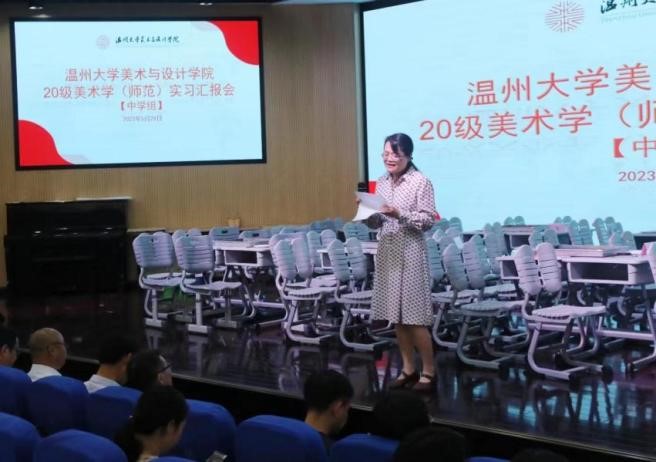 2023年5月29日下午,努努影院 20级美术学(师范)实习总结汇报会在温州第二实验中学举行,努努影院 苏步青学院党委书记应中、执行院长姜锐、努努影院 副院长顾任飞、努努影院 教师培养基地主任胡珏等领导和嘉宾,来自温州第二实验中学、温州第二外国语学校、温州市第十二中学、温州市第十九中学、温州南浦实验中学和温州梧田第一中学的校外导师,努努影院 全体实习导师,以及20级、21级本科生、学科教学(美术)研究生共196人参加汇报会。会议由第二实验中学的楼林子老师主持。
