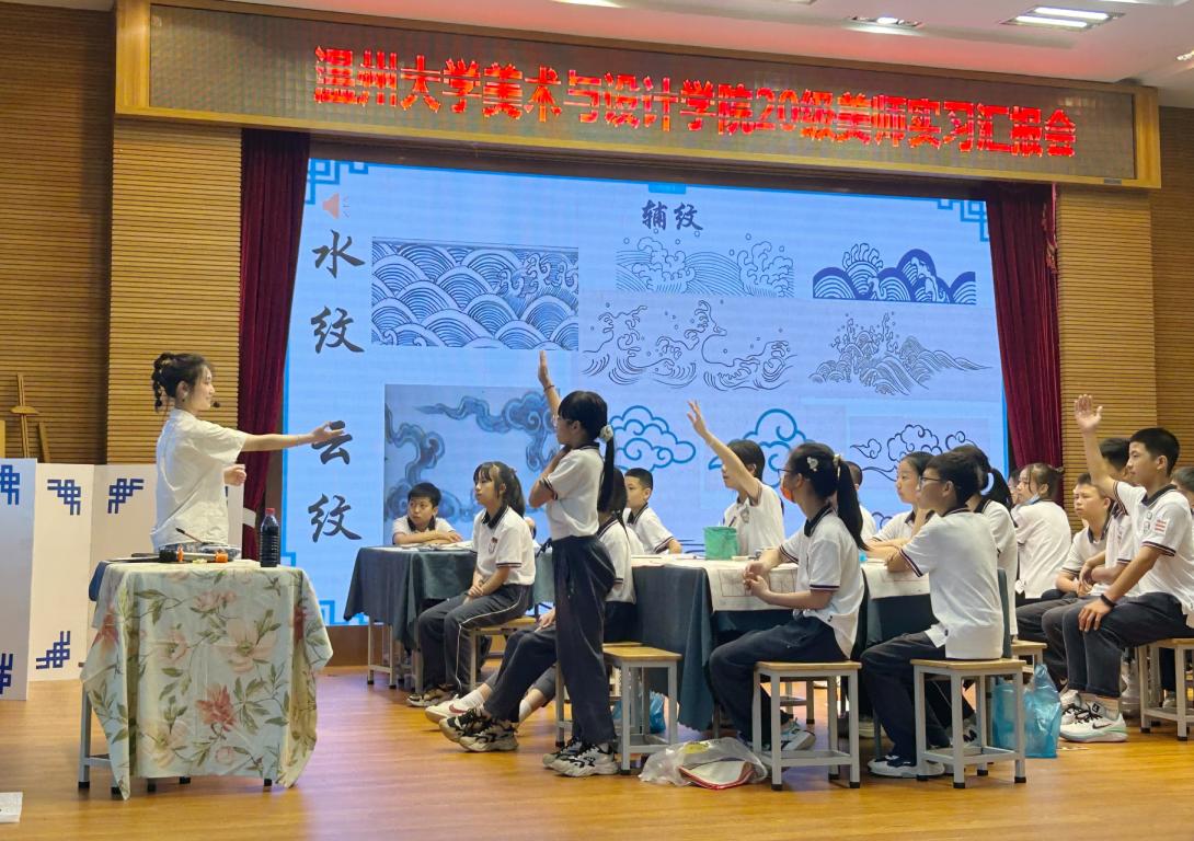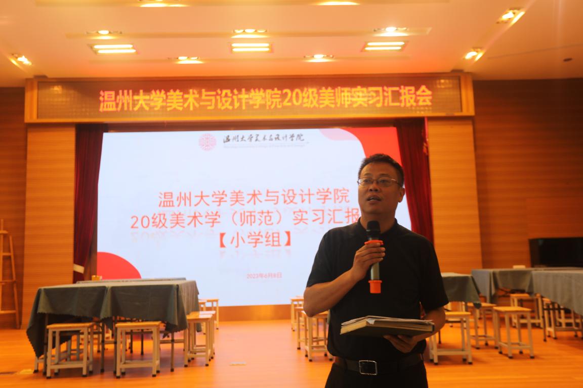 紧张又充实的实习生活已经落下帷幕,在近两个月的时间里,20级美师的同学们经历了从学生到教师的角色转换,初尝了身为一名教师的酸甜苦辣,也渐渐领悟了教书育人的真正含义。为了认真总结教育实习过程中的经验和不足,实习生们迎来了隆重的小学场实习总结汇报会。 6月8日,努努影院 美术学(师范)专业2020级教育实习汇报会·小学场在马鞍池小学报告厅准时召开。努努影院 副院长胡文超、温州市马鞍池小学校长林大康、美院实习导师胡建南、黄良珽、楼晓勉、谢艳芳、陈昭庭、王晶等老师,以及籀园小学、马鞍池小学、南浦小学各校区的指导老师,2020级美师专业的全体本科生、研究生出席了本次大会,大会由20级美师2班黄章铭、姚子昂主持。 嘉宾发言 会议伊始,胡文超副院长对嘉宾和指导老师们的到来表示热烈的欢迎,对同学们成功地完成了两个月的实习任务表示了欣喜和祝贺。接着林大康校长指出在这两个月的实习中,见证了同学们的收获与成长,也祝贺同学们在实习中有很大的收获。 实习生代表发言 随后,由实习生代表王浩宇进行汇报总结,他带来了不同校区的同学们精心制作的实习视频,生动有趣的画面一下子就引起了同学们的兴趣。他分享了不同校区中实习经历的点滴,表达了对实习指导师们辛勤指导的感激,以及本次实习对自己重大的意义。 各校区实习汇报 接下来便进入了实习的展示汇报环节,每所实习校都为我们带来了精彩纷呈的课堂。第一节课由马鞍池小学的实习生代表张子璇带来三年级上册《中国彩陶》。课程从感受两种不同的陶瓶:看一看,摸一摸,对比两种瓶子的不同作为导入,接着设置复原彩陶碎片活动,一起看看7000多年前的陶器,从器形、花纹等方面,引导学生更进一步地了解彩陶文化。 第二节课由籀园小学的实习生代表郭一瑄带来三年级下册的《门票设计》。课堂导入用一张照片来引出门票,引起学生们的兴趣。中间过程让学生们进行连一连小游戏,增加课堂的趣味性。再让学生做一位小小设计师,亲手制作属于自己的门票版式,充分挖掘学生的自主设计创意! 第三节课由南浦小学西校区的实习生代表赵梦洁带来六年级上册的《金银器》。课程开始由南浦小学的实习生们为大家带来了一段情景片段,以此展开金银器的课题,一起去感受传统金银器的独特美感和华丽。 第四节课由南浦小学南校区的实习生代表杨铭带来六年级下册《青花瓷》。古老的文明赋予了青花瓷千年的神韵,彰显出传统文化的博大与精深。本课从周杰伦《青花瓷》导入,制造优美的意境进行揭题。引导同学们跟着歌曲进入青花瓷的艺术之旅,从了解青花瓷的发展史开始,让学生在探究青花瓷的历史过程中学习青花瓷纹饰特点、寓意表达、器型样式,从而获得对青花瓷的审美认知和对历朝历代的文化理解。 名师评课 汇报课结束之后,胡建南老师 、林大康老师进行了现场评课,两位老师对各位实习老师的汇报表示肯定,同时也提出了需要改进的地方。 留影合念 实习是一次将所学理论知识转化为实践的机会,通过这段实习经历大家都受益匪浅,实习虽已落下帷幕,但祝愿20级美师全体同学们都能千山万水,不负理想,不忘初心,拨云见日,未来可期! 本次与实习汇报会一同进行的还有优秀实习作业展,展示了20级美师同学在实习过程中的优秀板书、学生作品,展览布置有新意,呈现了优质的教学成果!
