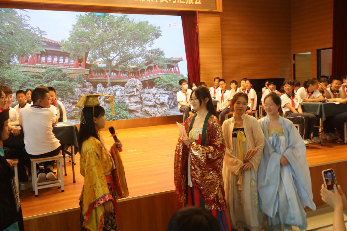 第三节课由南浦小学西校区的实习生代表赵梦洁带来六年级上册的《金银器》。课程开始由南浦小学的实习生们为大家带来了一段情景片段,以此展开金银器的课题,一起去感受传统金银器的独特美感和华丽。