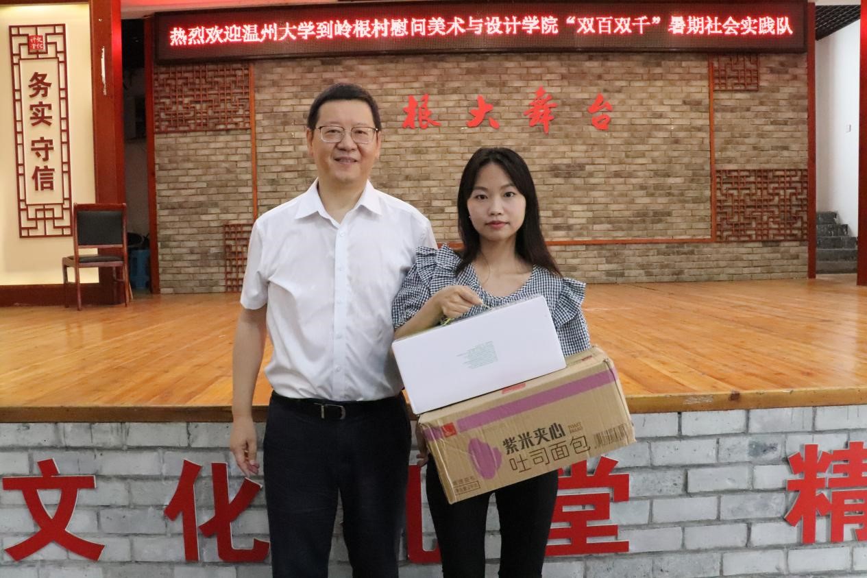 交流座谈会后,郑部长为实践队员送上慰问礼品,也预祝实践队员们能够圆满的完成实践任务,在实践中学得真本领,练就真功夫。