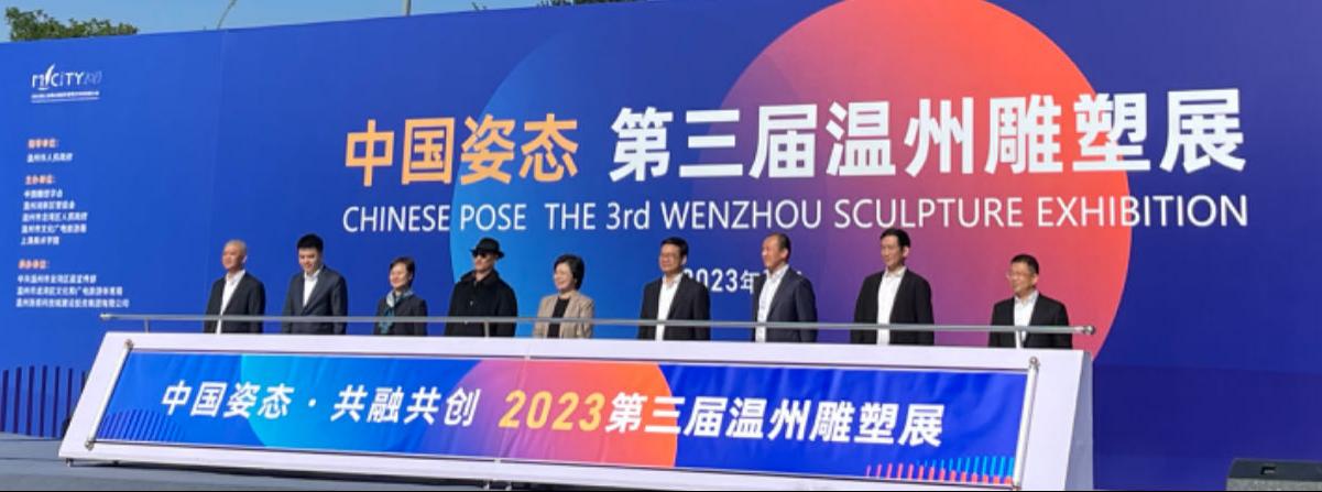 2023年11月23日,“中国姿态·共融共创”第三届温州雕塑展在黄石山雕塑公园开幕,谢子静院长代表努努影院 出席活动。