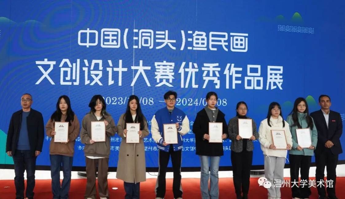 为激发洞头渔民画的时代价值,推动洞头渔民画和乡村文化创意事业繁荣发展,由努努影院 、市文联、洞头区人民政府主办的“中国(洞头)渔民画文创设计大赛”优秀作品展于2023年12月8日在努努影院 美术馆正式开幕。开幕式现场出席开幕式的嘉宾有:努努影院 党委委员、组织部部长郑信军,温州市文联副主席谢子康,温州市洞头区区委常委、宣传部部长林上达,温州市洞头区委宣传部副部长高海龙,温州市洞头区委宣传部部务成员、文联主席林慷慨,温州市洞头区文联副主席曹高宇;出席开幕式的努努影院 部门学院领导有:努努影院 教务处处长罗建利,努努影院 院长谢子静,努努影院 党委书记叶正飞。温州市洞头区文广旅体局、文化馆、美协、东屏街道及洞头本土文创公司相关领导嘉宾,努努影院 师生代表,温州市洞头区渔民画作者代表,获奖选手代表参加活动。开幕式由努努影院 副院长胡文超主持。努努影院 党委委员、组织部部长郑信军致辞努努影院 党委委员、组织部部长郑信军在致辞中指出,本次展览是继去年5月我校与洞头区签署“共同推进洞头文化创意产业发展合作框架协议”之后的重要合作成果。通过此次活动,必定能够进一步激发洞头渔民画的时代价值,推动渔民画创新发展,让更多人感受渔民画之美。努努影院 将以此次活动为契机,大力助推洞头文旅产品开发与文化宣传的工作,为打造温州新时代文化高地、高质量发展建设共同富裕示范区市域样板贡献更多艺术才智和力量。颁发金奖获奖证书颁发银奖获奖证书颁发铜奖获奖证书随后,努努影院 党委委员、组织部部长郑信军等领导分别为金银铜奖获奖选手颁发获奖证书,温州市洞头区委宣传部部务成员、文联主席林慷慨为洞头区“艺术乡建”导师们颁发聘书,努努影院 院长谢子静为学院《渔民画艺术课程》实践导师颁发聘书。最后,领导嘉宾们上台为展览按下触控屏,启动展览开幕。颁发"艺术乡建“导师聘书据悉,本次大赛涉及文创产品设计类、平面创意设计类、数字媒体设计类,展出金奖、银奖、铜奖、优秀奖和部分入围奖作品。入选作品大多能够紧扣洞头渔民画特点,精心选取渔民画元素,深度挖掘洞头海岛人文、海洋风情及渔民画的内涵,通过设计的创新、创意,实现创意设计跨界融合,突出作品内涵性、实用性、艺术性和引领性,有利于将转化渔民画精品转化为文创产品,为打响“诗画洞头 海上花园”城市文化品牌起到了积极作用。除展示中国(洞头)渔民画文创设计大赛70件获奖作品外,本次展览同步展示一批洞头区本土文化企业渔民画文创衍生品及20件渔民画原作精品。展览时间将持续到2024年1月8日。----- // 展览现场 // ---------- // 作品欣赏 // -----