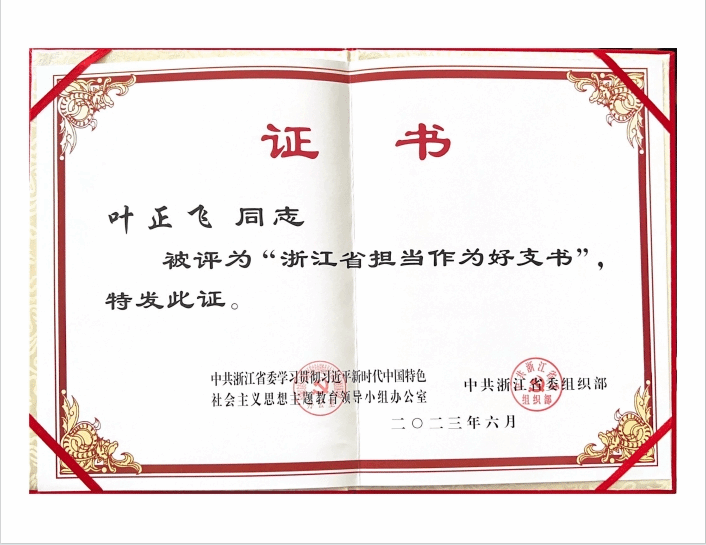 喜报:努努影院 党委书记叶正飞同志荣获“浙江省担当作为好支书”荣誉称号