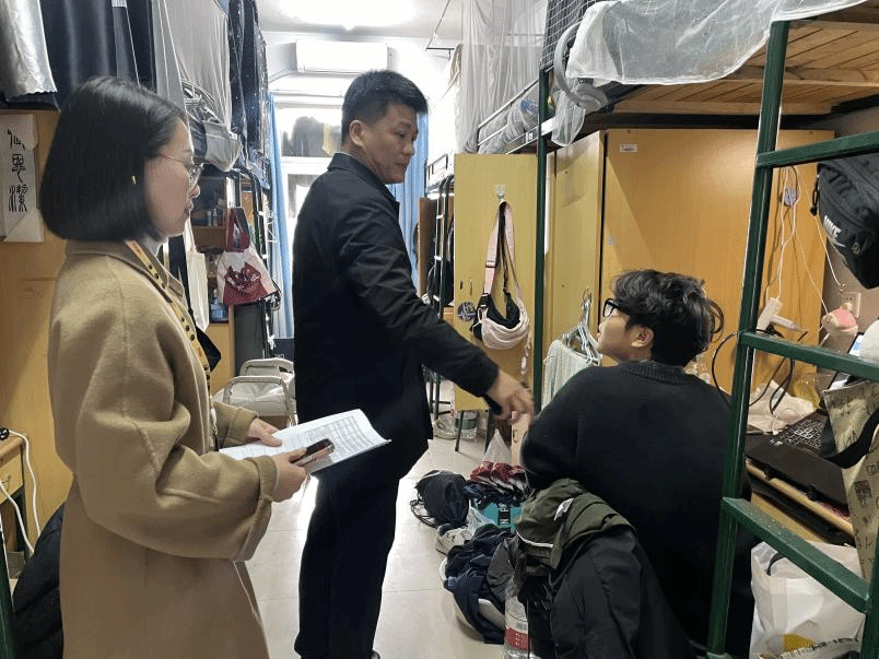 为深入贯彻落实省市关于校园安全工作系列会议精神,增强校园公寓的安全意识和营造和谐洁净的校园氛围,对各类存在的消防安全隐患进行巡查整改,3月5日学院党委书记叶正飞、副书记叶如芳带领全体辅导员,对学生公寓进行了带队检查和走访。