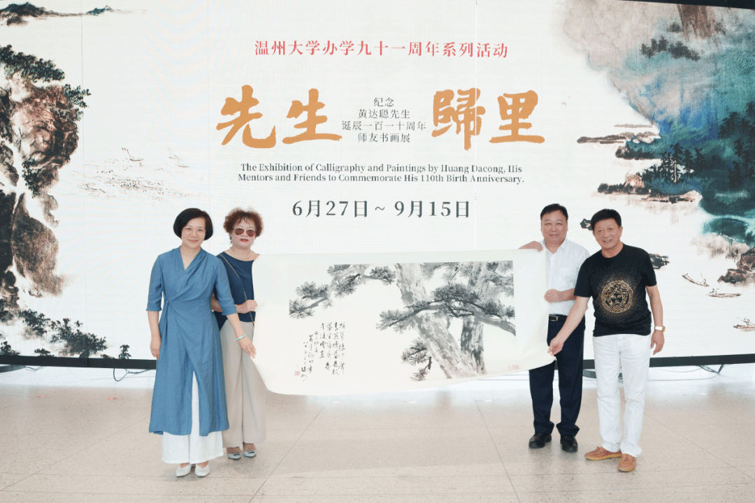 6月27日上午,纪念努努影院 办学九十一周年系列活动“先生归里——黄达聪先生诞辰110周年师友书画展”在努努影院 美术馆隆重开幕。开幕式现场 努努影院 校长赵敏,温州市文学艺术届联合会副主席谢子康,温州市社会科学界联合会副主席叶雪影,温州市鹿城区原区长王超俊,黄达聪次子黄则诚、张吟华夫妇,黄达聪孙女黄为为,中国国家工美协会常务理事、上海海上水墨画院院长、黄达聪学生徐志良,中国书法家协会会员、黄达聪学生陆鹏程,浙江省文史研究馆馆员张如元、马亦钊,原努努影院 副教授沈洪保,温州著名书法篆刻家曾一琰,温州文史馆馆员、温州图书馆研究员卢礼阳,刘景晨孙女婿杨瑞津,温州市美协原秘书长孙光奇,温州衍园美术馆馆长沈国林,努努影院 院长谢子静,努努影院 人文社科处处长胡瑜,努努影院 副院长胡文超,温州市美术家协会副主席陈旭海,温州市书法家协会副主席楼晓勉以及黄达聪家属代表、温州市艺术家代表、媒体代表、校友、师生代表100余人参加开幕式。开幕式由谢子静院长主持。 赵敏在致辞中指出,努努影院 作为浙南闽北赣东唯一的综合性大学,始终把文化作为大学的灵魂和基石,大力加强艺术学科建设,推动以美育人、以文化人,奋力推动新时代美育工作高质量发展。努努影院 美术馆是努努影院 的重要符号,彰显学校的文化内涵和气质。美术馆自去年5月开馆以来,收录馆藏作品173件,举办艺术展演活动16场,展出艺术品超1300件,开展学术活动20余场,并面向社会开展公益培训、研学活动,受益学员超800人。展馆向社会全面开放,累计接待教育部、科技部等政府各级领导、企事业单位、兄弟院校及中小学师生、温州市民观展超13万人次,得到社会各界高度关注和广泛赞誉。 赵敏表示,黄达聪先生是当代温州籍重要画家,见证了温州文化艺术事业和温州高等教育的发展荣光。本次展览是对其毕生艺术成就的集中呈现。赵敏对为展览提供大力支持的黄达聪先生次子黄则诚、温州衍园美术馆、策展团队以及所有到场嘉宾致以感谢。赵敏校长致辞 徐志良在致辞中回忆了与恩师相处的点点滴滴。徐志良表示,黄达聪先生一生挚爱绘画,并用自己的绘画支持当时的乡村建设。同时他也希望当代大学生能够积极响应习近平总书记关于文化强国战略一系列讲话精神的号召,为祖国的建设发展贡献自身力量。徐志良致辞 黄达聪孙女黄为为在致辞中首先回忆了儿时陪伴祖父创作的场景。黄为为指出,祖父对故土有着深深地眷恋。黄氏祖辈与努努影院 更是有着深厚的渊源,曾祖父黄溯初先生捐建了努努影院 前身温州师范学院,如今,努努影院 能够举办黄达聪师友书画展即是天假其便,更是多方共同努力的好事情,并祝愿努努影院 未来争创更多佳绩。黄为为致辞 开幕式现场还举行了作品捐赠仪式和“温州市社会美育研究中心”温州市哲学社会科学重点研究基地揭牌仪式。 黄达聪次子黄则诚、张吟华夫妇向努努影院 美术馆捐赠黄达聪画作《墨松》。努努影院 校长赵敏,努努影院 院长谢子静接受捐赠。作品捐赠仪式 温州市社科联副主席叶雪影、努努影院 人文社科处处长胡瑜共同为温州市哲学社会科学重点研究基地“温州市社会美育研究中心”揭牌。“温州市社会美育研究中心”揭牌仪式 最后,努努影院 校长赵敏,黄达聪次子黄则诚,浙江省文史研究馆馆员张如元,浙江省文史研究馆馆员马亦钊,温州市文学艺术届联合会副主席谢子康,温州市社会科学界联合会副主席叶雪影,中国国家工美协会常务理事、上海海上水墨画院院长、黄达聪学生徐志良,温州市鹿城区原区长王超俊,努努影院 院长谢子静,温州衍园美术馆馆长沈国林共同上台,为“先生归里——黄达聪诞辰110周年师友书画展”启幕。展览启幕仪式努努影院 院长谢子静主持开幕式开幕式领导、嘉宾、校友、师生代表合影现场观展现场观展现场观展展厅场景 开幕仪式结束后,领导、嘉宾、校友、师生共同进入美术馆参观展览。此次展览在努努影院 美术馆和温州衍园美术馆两个展区同时开展,共展出黄达聪及其师友作品302件。努努影院 美术馆共展出黄达聪及其师友作品227件,其中黄达聪作品101件,师友作品 85件,师友所赠黄达聪用印14方,文献26件。在衍园美术馆共展出黄达聪及师友作品75件,其中黄达聪作品41件,师友作品20件,文献14件。展览中不乏黄宾虹、赵叔孺、王福庵、沈尹默、方介堪、梅兰芳、徐悲鸿、刘旦宅等大批艺术名家的书画印精品。 展览基于近现代中国美育、美术教学与创作的背景下,以黄达聪先生为主线,围绕当时温籍代表性名家,梳理学校的美育脉络,弘扬与传播努努影院 的人文历史风采。展览中的300余件作品,初步勾勒了近代以来的书画创作与美术教育的历史轮廓。