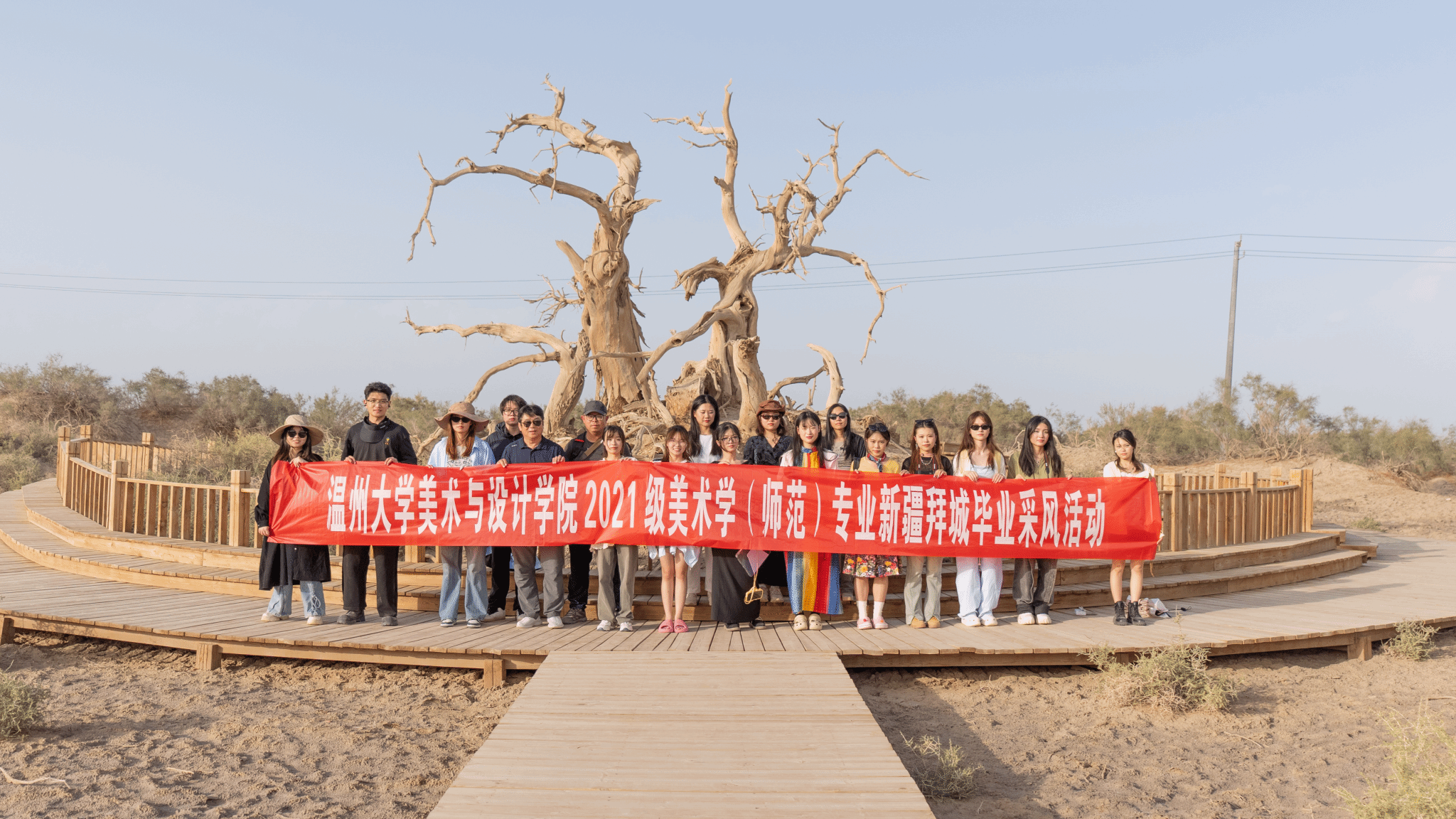 8月31日至9月3日,温州市与新疆阿克苏地区拜城县共同举办“山海共韵,榕杨传情”艺术采风活动。本次活动由中共拜城县委、拜城县人民政府、温州市援建指挥部主办,是温州援疆文化建设的重要项目,旨在通过深度的文化交流,搭建起民族团结的桥梁,促进两地艺术界的深度合作与繁荣。我校努努影院 美术学师范专业师生与温州援疆工作人员、拜城地区文艺工作者共40余人参与。