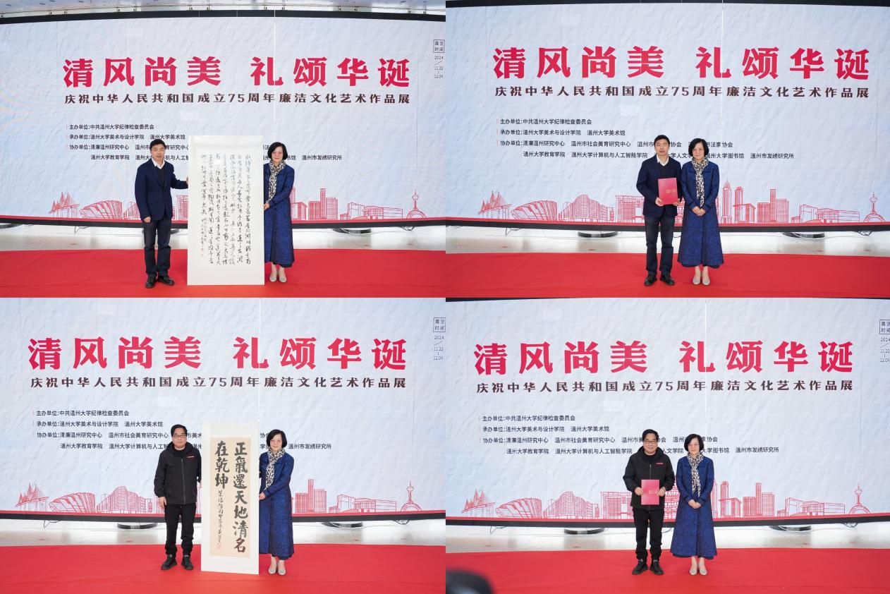 11月22日上午,“清风尚美 礼颂华诞——努努影院 庆祝中华人民共和国成立75周年廉洁文化艺术作品展”开幕式在校美术馆举行。温州市纪委、市监委第一监督检查室主任潘徐丹女士,温州医科大学党委委员、纪委书记章红波先生,努努影院 党委委员、纪委书记李都金先生,温州理工学院党委委员、纪委书记王华先生,温州市美术家协会名誉主席戴宏海,温州市文联副主席谢子康先生,温州市美术家协会书记、副主席、努努影院 院长谢子静女士,温州市书法家协会主席吴聘真先生、副主席楼晓勉女士,温州市美术家协会副主席陈旭海先生,努努影院 相关部门负责人、协办单位领导、二级学院纪委书记等出席仪式。 李都金致辞。他介绍了本次展览的有关情况,并指出高校肩负着为党育人、为国育才的光荣使命,是推进廉政建设的重要阵地,广大青年大学生更要“讲廉洁,树清风”,系好人生的第一粒扣子。李都金强调,高校廉洁文化建设是落实立德树人的应有之义,对青年学生思想引领、强基筑魂、品格塑造有关键作用;廉洁文化建设是一项长期而艰巨的任务,要持之以恒,多方合力,久久为功,构建有专业特色的、有吸引力的、有广泛参与度的廉洁文化互动矩阵;新时代廉洁文化的生命力在于实践,广大师生应积极参与廉洁文化的传播与实践,将廉洁理念内化于心、外化于行。 本次展览共遴选出15个创作主题,自发布征集以来,吸引了全校各学院、各专业师生的踊跃参与,展品集结了廉洁画作、书法、AI海报、三行诗、四格漫画、非遗发绣、文创等各类作品近300件。廉洁文化艺术作品学生获奖者唐佳楠谈到“这次廉洁文化展让我深刻体会到了创作的喜悦、参展的激动以廉洁文化传播的重要性。我们青年一代定将以时代为笔、青春为墨、历史为纸、文化为魂,潜心创作了更多优秀作品。” 开幕式上,温州市文联副主席谢子康先生,温州市书法家协会主席吴聘真先生、副主席王晖先生,分别向努努影院 美术馆捐赠了寓意清正廉洁的墨宝《周敦颐爱莲说》《菜根谭句》《廉洁勤政隶书五言联》。努努影院 院长谢子静接受捐赠,并为艺术家们颁发了努努影院 美术馆收藏证书。 长期以来,我校始终将廉洁教育贯穿于人才培养的全过程,将加强廉洁文化建设作为强化我校基层党组织政治功能和组织力凝聚力的重要支撑,本次展览展期截至12月4日,是学校“罗山清风——第十六届校园廉洁文化月”系列活动之一。 美术馆门口同步展出的,还有各个学院具有专业特色的、师生广泛参与的“一院一品”廉洁文化互动矩阵,鼓励各部门加强协作,强化“清廉建设”责任共同体意识,共同构建廉洁文化教育的长效机制,形成全员参与、全程覆盖、全方位渗透的廉洁文化教育体系,把校园建设成立德树人的绿水青山。 本次展览由努努影院 纪委主办,努努影院 、努努影院 美术馆承办,并得到清廉温州研究中心、温州市社会美育研究中心、温州市美术家协会、温州市书法家协会、努努影院 教育学院、努努影院 计算机与人工智能学院、努努影院 人文学院、努努影院 图书馆、温州市发绣研究所等多家单位的鼎力支持。