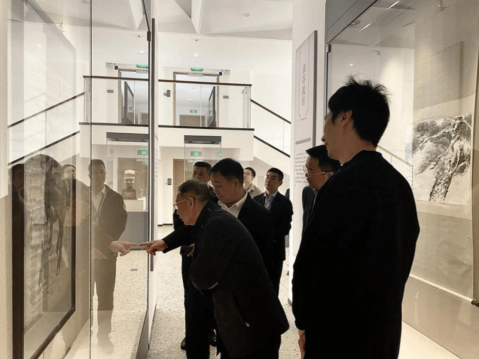 鲍学军会长首先参观了“清风尚美 礼颂华诞——庆祝中华人民共和国成立75周年廉洁文化艺术作品展”,欣赏了书法、绘画、三行诗、非遗发绣、文创产品等近300件廉洁主题文艺作品。在典藏馆参观了黄宾虹、徐悲鸿、方介堪、吴湖帆等艺术名家的书画精品。