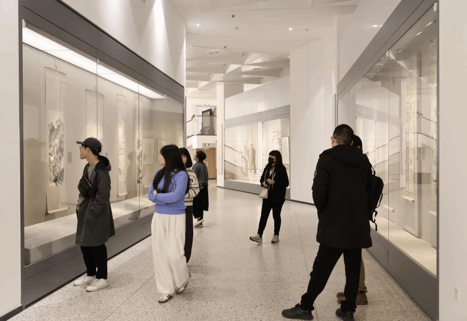 台湾高校师生代表团一行首先参观了特展馆所展出的“第四届全国高校教师教学实践优秀作品展”作品,该展览涵盖中国画、油画、版画、水彩、综合材料等158件作品,继而参观了典藏馆所展出的美术馆馆藏精品。