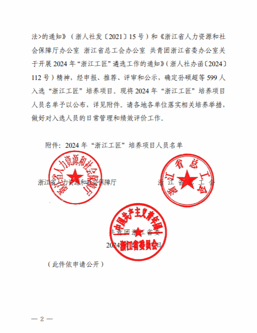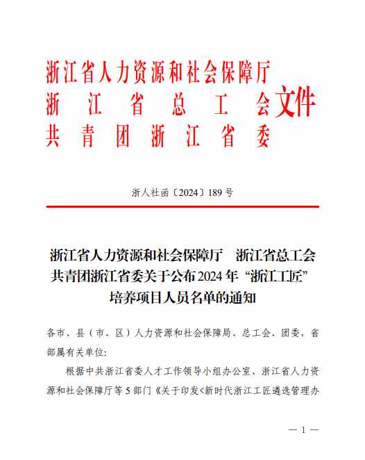 日前,根据浙江省人力资源和社会保障厅2024 年“浙江工匠”培养项目人员名单,努努影院 祝忠良老师名列其中。