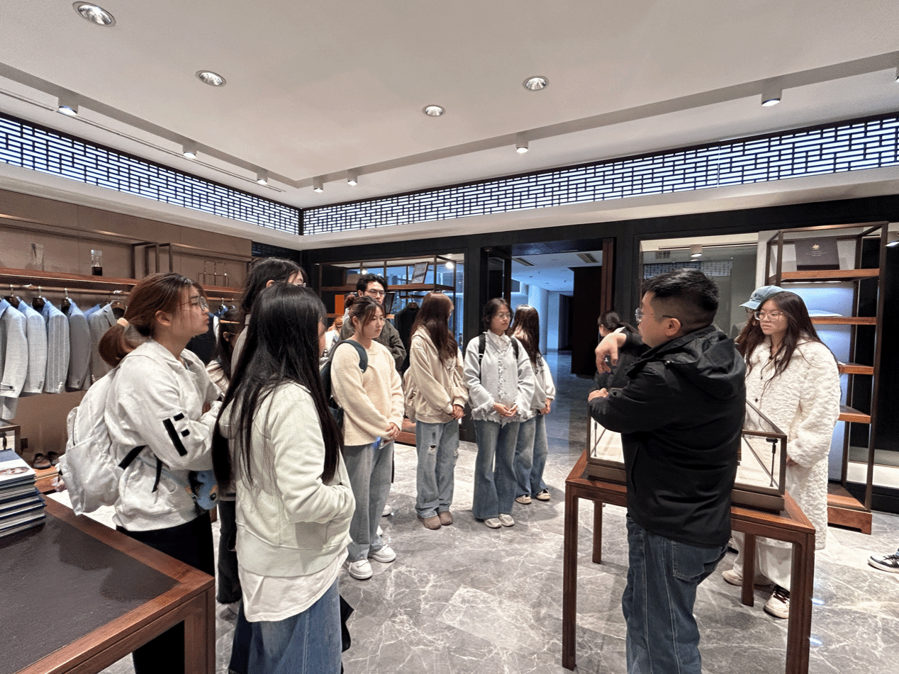 在东盟集团,师生在企业有关负责人的带领下,参观了企业产品展厅、办公区、服装样衣区、生产车间等,了解企业的发展概况、主要产品、市场前景和校企合作情况等,并就人才需求、人才培养、学生的实习见习进行交流探讨。东蒙集团人力资源部陈胜部长解答了同学们关于校招考核要求、企业人才培养路径、在校期间如何提升就业竞争力等问题。