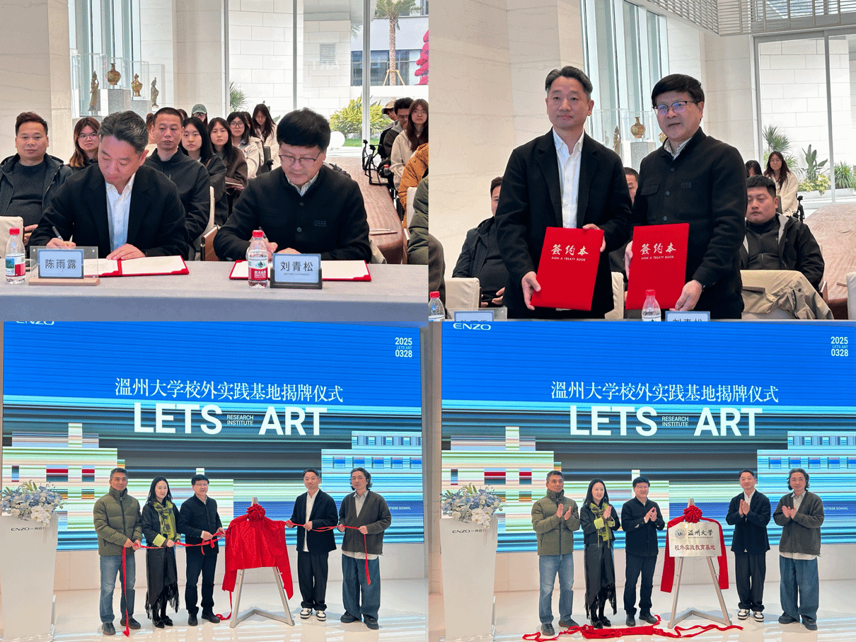 随后,调研一行人来到浙江一洲道具有限公司,举行了“校外实践基地”签约揭牌仪式。仪式上,一洲道具总经理陈雨露对美院师生一行表示欢迎,介绍了一洲道具的发展历史、业务构成和经营模式。努努影院 学术副院长叶婷介绍了努努影院 服装与服饰设计专业特色、师资力量和人才培养模式。中国服装设计师协会陈列委员会主任委员、努努影院 荣休副教授韩阳老师发言,对双方校企合作、资源共享、共促发展表示祝愿。最后,努努影院 党委书记刘青松与浙江一洲道具有限公司代表共同为“校外实践基地”签约并揭牌。本次签约共建是校企双方携手共进、互利共赢的起点,对努努影院 人才培养和专业发展具有深远意义。揭牌仪式后,师生一行参观了一洲道具车间,了解材料加工流程、智慧化生产管理和服务品牌案例等。