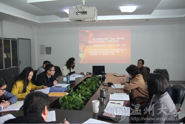 在中心组理论学习扩大会上,与会全体积极献言献策,就深入贯彻落实全国(全省)高校思想政治工作会议精神展开大讨论。会议认为,思想政治工作如何创新方式方法、创新机制载体尤为重要。会议提出,要建立回归本真的师生关系,使师生关系始终建立在“教”与“学”为基础的知识和技能上,避免师生关系被“工具化”;要充分利用校园文化建设的各类载体开展润物无声的教育工作,如从景观建筑“溯初亭”来探索温大的历史故事;要挖掘日常生活的典型案例,保有思想政治教育的真实与丰满。会议还提出,思想政治工作根本上是做人的工作,只有紧紧围绕学生、关照学生、服务学生,要努力在全院形成立德树人的合力。会议认为,思想政治工作进课堂尤为必要,要将“思政课程”向“课程思政”转变。要推动专业课程去挖掘更多的精神养料,将传统文化如书画、建筑、服饰等蕴含的德育意识融入专业教学,增加专业课程的厚度与温度;要利用学生艺术采风等实践课程,去深刻理解德育教育的历史和现实意义;要充分挖掘温州特有的传统文化项目,作为专业德育课程的丰富教育资源。