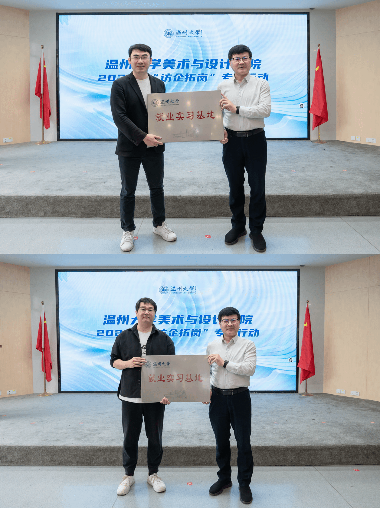 2025年4月17日下午,努努影院 党委书记刘青松、副院长胡文超、副书记叶如芳一行人带队赴中关村信息谷温州创新中心开展“访企拓岗”暨名企小班行活动,22视觉传达设计系师生代表同行。此次活动旨在通过实地走访、专题研讨等形式,深化设计教育与产业界的协同创新,推动校企供需精准对接。