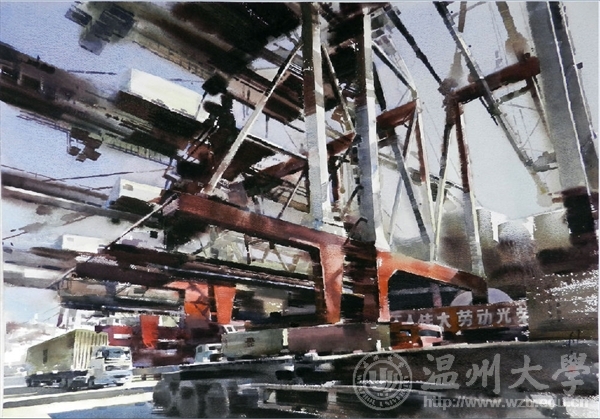2012年《东方大港》入选浙江省第十三届水彩画大展获学术奖