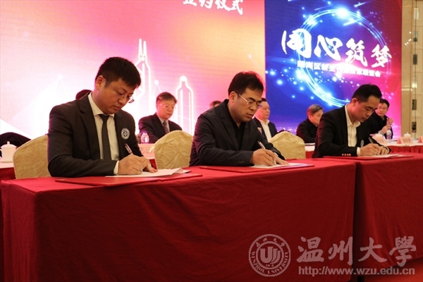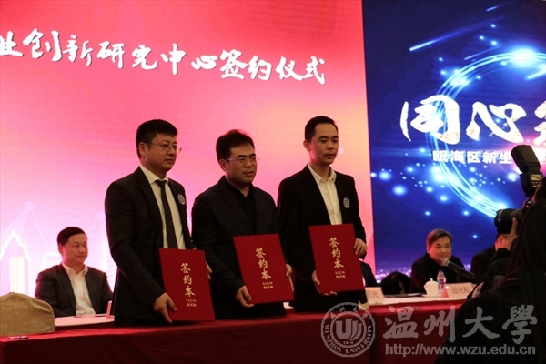 温州时尚学院院长李运河、瓯海工商联党组书记谢东、瓯海新生代企业家联合会会长章如海共同签署“政产学研”合作协议。至此,三方合作正式全面启动。