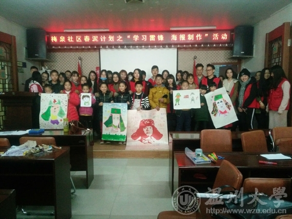 2017年3月4日,努努影院 “艺家人”青年志愿者协会“载梦小舟,梅泉支教”活动在梅泉社区举行了开班仪式,此次支教活动是本学期的第一期,青协梅泉基地负责人、温大美院志愿者们及小朋友们参加了开班典礼。 “艺家人”干事李心源同学的发言拉开了此次会议的序幕。首先由梅泉社区负责人代表梅泉社区表达了对志愿者们的感谢以及对此次活动的期望;紧接着,努努影院 团学指导老师李雪涛也讲述了自己对此次活动的期望和对志愿者的赞赏,对参加活动的志愿者提出了:“在教学活动中用孩子的视角去引导,充实自己大学生活”的期望。 开班典礼结束后照常开展了支教活动,由于周日是雷锋日,响应“学习雷锋好榜样”的号召,我们展开了“学习雷锋 海报制作”的活动。小朋友们按照事先打印好的雷锋轮廓进行创意创作,有的采用水粉画形式,有的是杂志拼贴,有的是用马克笔进行抽象创作,还有的是直接用手指印的方式,将一张张雷锋海报制作完成,为他们心目中的雷锋赋予新意义。 开班典礼的顺利结束和活动的完美展开,让大家对新学期的支教充满了热情。最后,志愿者们和小朋友们分别在美院青协制作的大海报上签名,以此来纪念这次活动的意义,让孩子们知道雷锋精神是一种时代精神,学习雷锋,纪念雷锋不能只停在三月,我们要将雷锋精神深入到每个孩子的心中,让孩子们发扬“学习雷锋”的精神,心怀善良、诚信待人、积极向上。 图/文:鲍彬彬朱灵睿