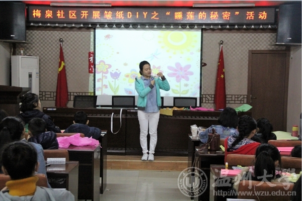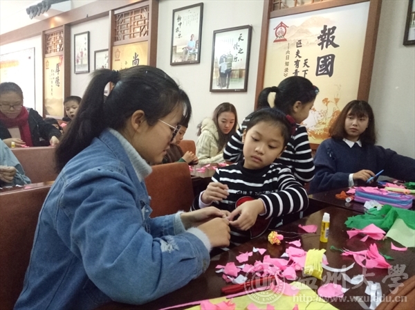 12月10日,努努影院 “艺家人”青年志愿者协会“载梦小舟”梅泉支教活动在梅泉社区开展第六课志愿教学,此次支教活动是本学期的最后一期,在课程结束后随即召开了结业典礼,青协梅泉基地负责人、温大志愿者们及小朋友们参加了结业典礼。 这周开展的支教课程活动主题为“皱纸DIY之睡莲的秘密”。主讲志愿者是美院16级美术师范班的张蕾同学,首先她带领小朋友们了解制作步骤以及制作过程中需要注意的问题,接下来就是小朋友们在志愿者的协助下跟随张蕾同学的解说来制作有趣的睡莲啦!小朋友们有条不紊地跟随着主讲人的讲解,将睡莲的各个部位都完成了,将其组装成一朵朵幽静而神秘的睡莲,真是魅力无穷,让人不得不感叹小朋友们创意无限! 支教活动结束后便是结业典礼,“艺家人”干事汪成龙同学的发言拉开了此次典礼的序幕,首先是由努努影院 的李雪涛老师发言讲述了对梅泉支教活动的大力支持与期望,同时对每一个志愿者的付出表达了赞许与欣赏:“我相信每一位来到这里的志愿者所付出的是一份不求回报的爱”。随后是梅泉社区的负责人发言表示对我们温大美院青协的支教活动给予极大的支持和赞同,相信志愿者们的热情犹如阳光,照暖每一个小朋友的心,带着他们发现艺术的美!最后,结业典礼的圆满结束也预示着下学期将会有完美地开展,让我们期待吧! 图/文:鲍彬彬
