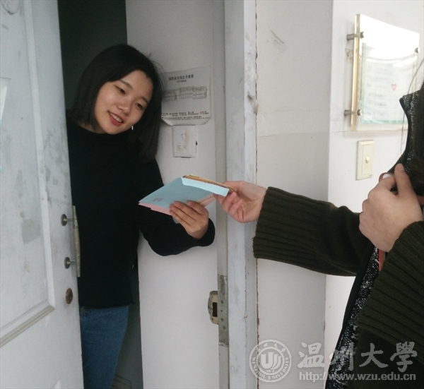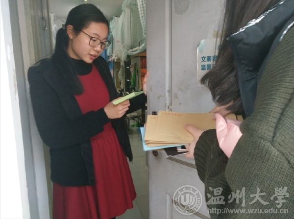 2016年12月28日,努努影院 “艺家人”青年志愿者协会在超豪学区开展了弘扬“雷锋”精神的“爱心邮递”活动。 在数字化信息化的时代,人们似乎已经忘记了在通讯技术落后的年代里如何将情感用文字嵌入信中,并让它飘向远方,表达内心情感。此次活动号召通过以信件的方式写下对他人的祝福或者感谢,由志愿者们送到收件人的手中,正是对从前慢节奏的情感交流很好的体验。活动受到了广大同学们的一致好评,同学们纷纷将想说的话写在信纸上,在收齐信件后,小邮差们穿梭在各栋寝室楼内,他们轻叩房门微笑地送上手里的信件,并与收信人合影留念。 图/文:王伟