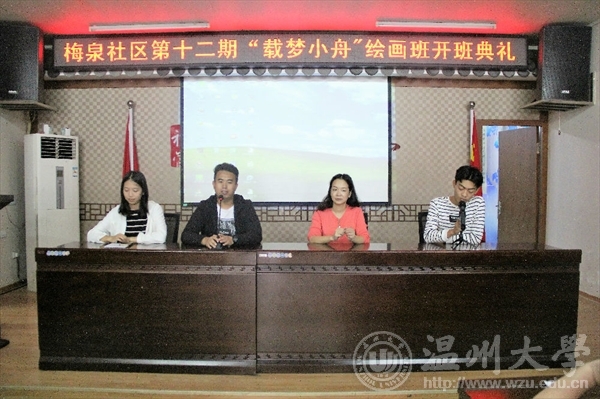 10月16日,努努影院 “艺家人”青年志愿者协会“载梦小舟”梅泉支教活动在梅泉社区正式开班,青协梅泉基地负责人及温大志愿者们参加了开班仪式。