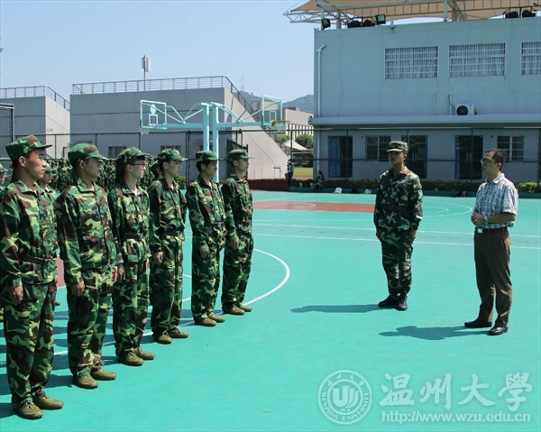 走进北校篮球场,二营三排的“战士们”正头顶烈日进行队列训练,他们个个斗志昂扬,英姿飒爽,动作干净利落,军姿庄重笔挺,口号更是激昂豪迈。与训练时不同,休息时他们又回归原来的活泼,对着镜头摆起了剪刀手。杨书记亲切地慰问教官,对他们的辛劳表示感谢,并询问学生的训练情况。在看望参训学生时,他首先强调了军训与国防教育的重要性,号召同学们把自身价值与祖国命运紧密联系在一起,进一步认清时代赋予当代大学生的历史使命和肩负的历史重任,他还激励同学们要向教官学习,学习军人的那种忘我工作的态度和刻苦训练的精神,在今后的生活中把这种精神发扬光大,运用到学习和工作中。