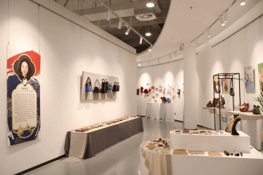 陈明艳教授领衔“爱拼”布艺工坊,寓意“爱拼才会赢”!团队以温情的布为媒介,用针尖描画艺术生活。本次展览呈现了多系列布艺贴画、丝带绣画以及风格多样的布艺包(牛仔包、民族包、几何拼布包等),琳琅满目,深受欢迎。工坊致力于融入中国地方风貌和传统非遗文化,精雕细琢布艺文创品,为中国的布艺繁荣贡献澎湃的“爱拼”力量。