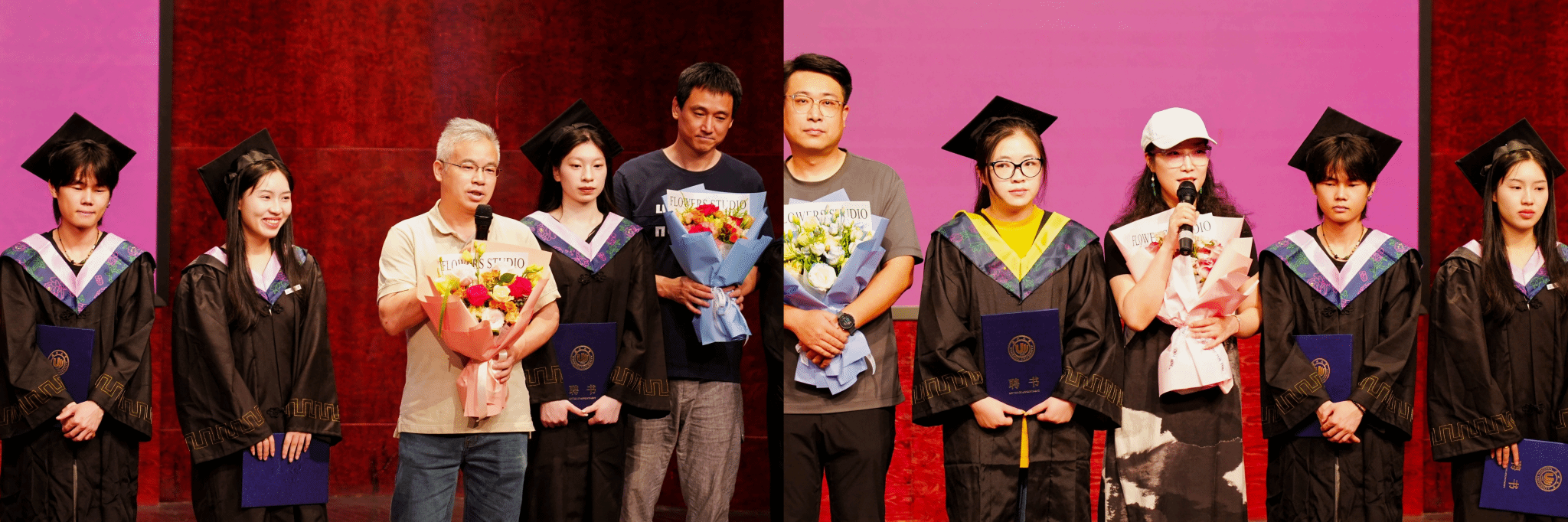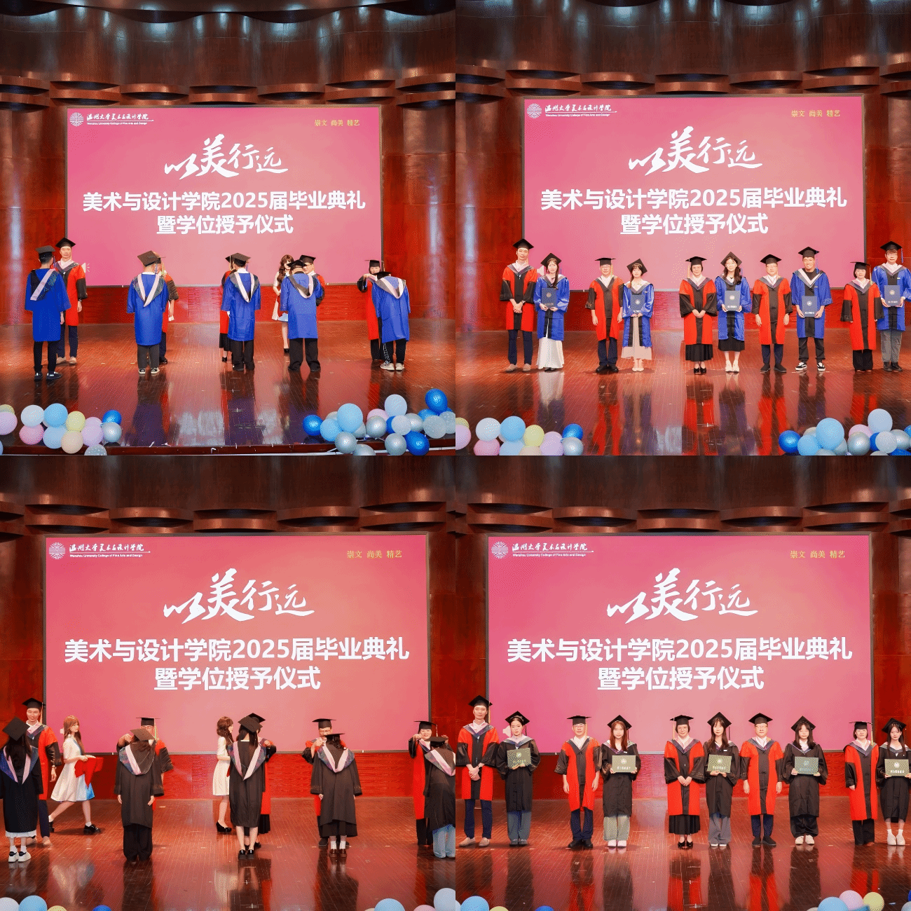 青春不散场,梦想又启航。2025年6月20日上午,“以美行远”努努影院 2025届毕业典礼暨学位授予仪式于南校音乐厅隆重举行。学院领导班子、系室主任、全体毕业班班主任、辅导员、毕业生家长代表以及2025届全体毕业生参加典礼。典礼由学院党委副书记叶如芳主持。典礼在庄严的国歌声中拉开帷幕。院长谢子静深情致辞,她分享了学院人才培养取得的成绩和毕业生们的成就,以及对全体本研毕业生的嘱托。寄望未来,谢院长勉励毕业生们心怀家国,勇担使命,希望同学们做有格局的艺术践行者;以美润心,以情动人,希望同学们做有情怀、懂感恩的人;坚守热爱,终身成长,希望同学们做不被定义的追梦人。院长强调:学院不仅是他们艺术梦想的起点,更是他们终身成长的坚实后盾!希望他们常回家看看。班主任代表徐亮老师寄语毕业生:在时运不济时,希望同学们学会向内求取,不一定苛求完美,活成他人理想中的样子,但却可以积聚美善,获得内心的平静;不断断完善对自我的认知,始终坚守人性的尊严;保持独立的思考,以一种更平和与包容的心态来迎接世界的不确定与可能。周键宇、吕甜甜两位同学作为2025届毕业生代表,表达了对师恩、同窗、母校的感激和不舍,以真挚的话语道出全体学子的新声。激励毕业生们牢记校训、院训,以青春激情描绘时代,定义未来。毕业典礼上的歌曲串烧,承载着梦想、眷恋和期许,熟悉的歌词藏着未说完的故事。当台上的《青花瓷》表演与学士服相遇,才懂得校园时光,原是岁月窑变中最珍贵的釉彩,祝福毕业生们以青花为釉,书写青春不朽。典礼上,党委副书记叶如芳宣读了“2025届省级优秀毕业生”名单,党委书记刘青松为获奖颁奖。副院长胡文超宣读了“2025届毕业生校友联络员”名单,并由毕业班班主任为他们颁发聘书。风携花信至,师语寄长歌。在这离别时刻,毕业生代表们也为班主任准备了礼物,感谢班主任老师们的辛苦付出和无私奉献,班主任们也给同学们送上了祝福和寄语。党委委员高玥宣读“2025届毕业生学位授予决定”。学院领导班子为全体2025届毕业生执“拨穗礼”,颁发学位证书,并合影留念。愿毕业生们以“美”为根基,怀澄澈如泉的赤子之心,守护真善美的生命底色。以“行”见担当,做穿透风雨的跋涉者,在实干中铸就青春锋芒。以“远”铸格局,以鲲鹏之志丈量天地,将个人星火汇入时代长河。此去山水万程,愿初心如月照征途,肩头有担、眼底有光、脚下有路!