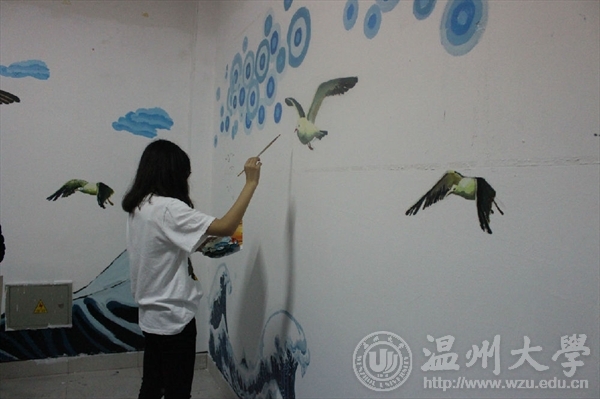4月23日,努努影院 “艺家人”青年志愿者协会负责人与十名志愿者前往美院二楼“党员之家”进行墙绘活动。下午一点,天空虽飘着雨丝,却挡不住志愿者们对志愿活动的热情,全数准时集合于美院大厅,前往“党员之家”进行墙绘。大家到了场地以后,听从负责人的安排,进行小组工作,拿了画稿以及绘画工具,便开始了墙绘。这次墙绘主要是本着美化“党员之家”的初衷,绘了精致的海浪在墙上,还有海鸥与云朵。进击的海浪暗示了党员们拼搏的精神,翱翔的海鸥寓意放飞梦想。大家对这次的墙绘都很重视,每画到关键处都要和周围的人讨论,每画一笔必定稍作调整,力求完美。也因为他们的努力,这次墙绘活动画上了圆满的句号。通过此次的墙绘工作,顺利完成了任务——美化“党员之家”。悉数从前的墙绘工作,从温州的乡镇街道到努努影院 的重要教室,从市民身边的墙绘志愿者再到电视上的青年下乡干部。“艺家人”的志愿精神被发扬在温州的大街小巷,也让美院的同学感染到“艺家人”的志愿精神,为社会贡献自己的一份力量。 文:“艺家人”青年志愿者协会王烨图:“艺家人”青年志愿者协会王烨