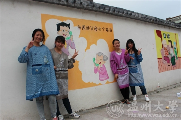 为了进一步响应与落实市委“新青年下乡”主题精神,弘扬传统孝道美德,美院志愿者们携手教师教育学院的“小老师们”一同参加了“乐清市绘二十四孝墙绘”的活动。12:30大家兴致高涨的集合于努努影院 东大门,每个人都很期待这次的活动。经过了一个多小时的坎坷的旅途,终于到达了目的地。在简单的参观完后,每组都得到了属于自己的“任务墙”。本次墙绘的主题主要是围绕一个“孝”字,志愿者们通过画笔和色彩,将自己想要传达的信念慢慢幻化成美丽的图像。很快我们的活动就出现了成效,小幅作品精美绝伦,大幅作品也控制的游刃有余,凸显了努努影院 与教师教育学院学生高超的美学素养,同时也展示了我温大优秀的学子风范。本次活动由两个学院联合举行,不仅仅促进了两个学院之间的感情,更是对我们自身能力的一种锻炼和培养。在这样一个特殊的纪念日,我们运用专业知识与技能去服务社会,真正做到专业与实践相结合,使我们融入到社会中去,为社会奉献出自己的一份力量。文:“艺家人”青年志愿者协会图:“艺家人”青年志愿者协会