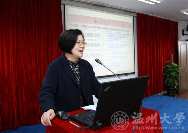 会议由张丽萍书记主持,她首先介绍了学院领导以及与会嘉宾,就努努影院 的师资建设、专业建设以及近况做了精简的介绍。并对温大美术学院创新创业的拉动作用给予了充分肯定。高度赞扬了浙江万里学院人文万里、绿色万里的办学理念和着重于大学生人才培养就业的办学方向,并感谢周院长一行人来到努努影院 交流学习。 随后谢子静副院长就一年来努努影院 接受教育部审核评估及努努影院 专业评估情况做了详细深入的介绍交流,她强调了万里美院和温大美院的共通性以及两方交流考察的必要性,希望此次交流考察能给双方都留下愉快友好的印象。她着重介绍了审核评估重点为学校人才培养目标与培养效果的实现状况,以四个度为标准:目标适应度、条件保障度、运行有效度和用户满意度以及审核评估、专业评估的工作流程。