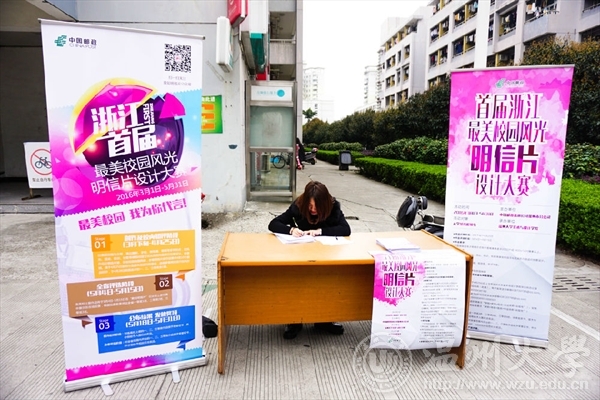 2016年3月20日,由中国邮政温州市分公司主办努努影院 承办的“首届浙江最美校园风光明信片设计大赛”在A区报刊亭和E区食堂前设点宣传。本次大赛旨在传承校园文化,宣传校园形象的同时,让努努影院 学生的专业知识与技能得到锻炼和提升。 上午9点,工作人员便开始接待同学们进行赛事报名以及打印自顶自明信片工作。值得一提的是,由中国邮政温州分公司提供的明信片自助打印机使得每一位现场的同学都可免费通过扫描微信二维码上传照片打印两张属于自己的明信片。本次明信片设计大赛的参赛方式多样,如摄影、手绘和剪纸等等,因此受到了许多同学的关注,争相报名参赛。本次大赛更是吸引来了温州商报记者,对于记者的问题,努努影院 学生科副科长叶筱卉老师也一一作了解答。 宣传活动一直持续到下午,可惜天公不作美,渐渐下起了绵绵细雨,工作人员不得不转移明信片打印机,并将报名点迁至一旁避雨处,但是这仍然浇灭不了同学们对本次比赛的热情,前来咨询和报名的同学络绎不绝,还有一些热心的同学特地将报名表带回去给室友和同学。下午四点左右,现场报名结束,经过工作人员的努力,已收回一百多分报名表。校园文化是一种积累,更有一种无形的吸引力和影响力,让我们期待在本次比赛中能够涌现出许多让人眼前一亮的作品,展现出我们努努影院 美丽独特的风貌和温大学子“敢为人先”的创新性思维! 文:设计宣传部 图:设计宣传部