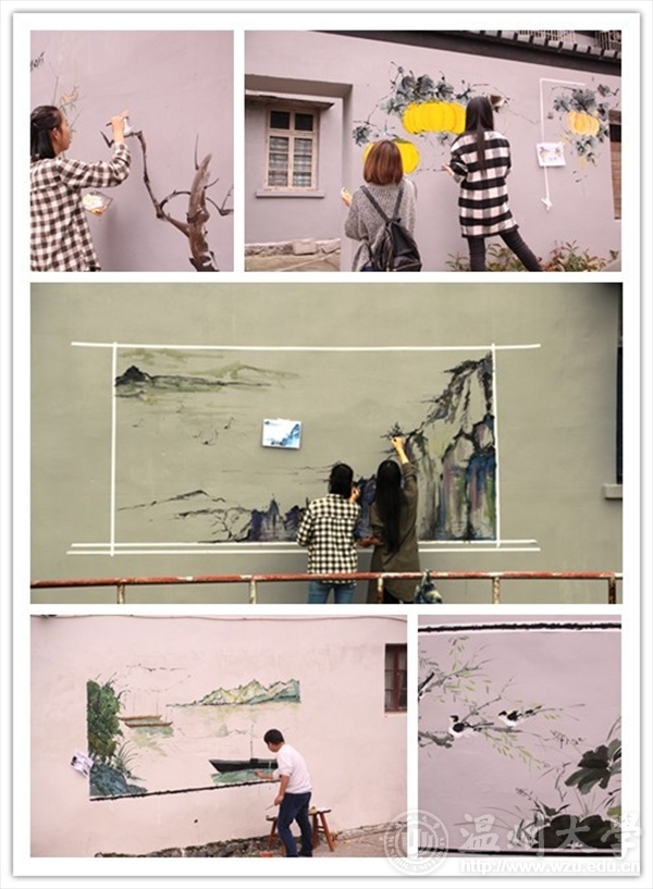 2015年11月15日,努努影院 “艺家人”青年志愿者协会协同志愿者来到新桥街道新桥村垟中开展山水创作主题墙绘活动。 虽然天时不佳,带有丝丝细雨,却挡不住志愿者墙绘的热情。大家到达场地后,进行分组,分配颜料用具,就开始了墙绘活动。针对山水创作的主题,志愿者积极讨论,墙面如何构图,颜色如何使用。最终用了一整天的时间,完成了一幅幅墙绘,同时,志愿者积极地热情,专业的绘画功底得到了村民的一致好评,展现给新桥街道村民的都是努努影院 志愿者吃苦耐劳、埋头干活、积极向上的优秀形象。 “艺家人”青协开展的此次墙绘活动,提供给温大在校大学生一个参与实践的平台,学以致用,展现出大学生的积极面貌,体现出美院学生的专业素质,向社会传递着努努影院 的正能量。 文:王烨摄影:王烨