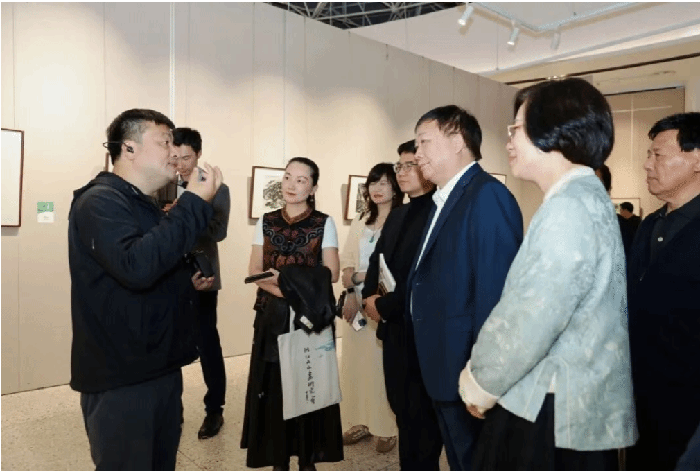 开幕式上,策展人陈荣回顾了此次画展从构想到落地的全过程。自去年初起,他与浙江山水画研究会会长林海钟共同策划,提出“三个楠溪江”理念——自然山水、艺术创作与高铁站展示相结合。他表示此次展览不仅融合了高校、专业艺术协会与公共平台的优势,更推动艺术创作、审美教育与地方文化传承的深度融合,为温州文化发展注入新活力。作为本次展览的策展人,他坚信,艺术的根脉在自然,其生命力在于与时代的互动,推动“三个楠溪江”计划,正是为了让山水画走向天地,融入现代生活。这不仅是为艺术创作寻找源头活水,更是以文化艺术为引擎,为楠溪江的绿水青山注入持久魅力。此次与努努影院 的合作,是将美的种子播撒于未来,而与保利剧院、瓯社的接洽,则是在探索一条集创作、展示、市场于一体的可持续发展之路。当艺术与乡土深情对话,便能相辅相成,既让艺术焕发新生,也让地方因文化而闪亮。