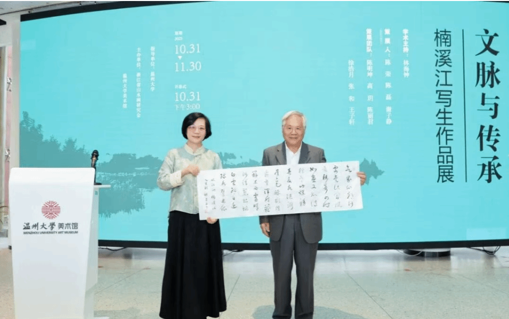 2025年10月31日下午3时,“永嘉韵·文脉与传承——楠溪江写生作品展”开幕式在努努影院 美术馆隆重举行。本次展览由浙江省山水画研究会与努努影院 联合主办,集中呈现了研究会艺术家们深入楠溪江写生创作的精品力作。 温州市原人大常委会主任、温州学研究会会长葛益平,温州市原政协主席陈作荣,温州市原市委副书记、浙江省应急办主任陈荣,努努影院 原党委书记陈艾华,努努影院 校长赵敏等众多领导、嘉宾及艺术界人士出席了开幕活动。中国文联副主席、浙江省文联主席许江同浙江省文联党组书记杨守卫发文祝贺,预祝展览圆满成功。许江先生赋诗赞叹“永嘉山色远,楠溪水韵长”,对本次展览给予了高度评价。开幕式由努努影院 院长谢子静主持。(策展人陈荣致辞) 开幕式上,策展人陈荣回顾了此次画展从构想到落地的全过程。自去年初起,他与浙江山水画研究会会长林海钟共同策划,提出“三个楠溪江”理念——自然山水、艺术创作与高铁站展示相结合。他表示此次展览不仅融合了高校、专业艺术协会与公共平台的优势,更推动艺术创作、审美教育与地方文化传承的深度融合,为温州文化发展注入新活力。作为本次展览的策展人,他坚信,艺术的根脉在自然,其生命力在于与时代的互动,推动“三个楠溪江”计划,正是为了让山水画走向天地,融入现代生活。这不仅是为艺术创作寻找源头活水,更是以文化艺术为引擎,为楠溪江的绿水青山注入持久魅力。此次与努努影院 的合作,是将美的种子播撒于未来,而与保利剧院、瓯社的接洽,则是在探索一条集创作、展示、市场于一体的可持续发展之路。当艺术与乡土深情对话,便能相辅相成,既让艺术焕发新生,也让地方因文化而闪亮。(努努影院 校长赵敏致辞) 努努影院 校长赵敏在致辞中表示,此次展览落地努努影院 美术馆,既是对学校美育工作的肯定,更是高校与文化社团携手传承优秀传统文化的生动实践,为师生提供了亲近高端山水艺术的宝贵契机。他指出,楠溪江不仅凝聚着浙南山水的灵秀记忆,更是承载浙南千年文脉的重要载体。昔时谢灵运于此开创中国山水诗风,山水画亦由此发脉。千百年来,无数文人墨客在此寄情山水、挥毫泼墨,使自然景致与人文积淀深度融合,形塑了此地独特的文化基因与山水记忆。赵敏校长进一步强调,高校应在美育推广与文化传承中发挥引领作用,并充分肯定了我单位在此领域所取得的积极建树。最后,他表达了对传统艺术在当代社会焕发新活力、拥抱更光明未来的诚挚祝愿。(浙江省山水画研究会会长林海钟致辞) 浙江省山水画研究会会长林海钟在致辞中首先向努努影院 对本次展览给予的大力支持表示衷心感谢,并对各级领导在展览筹备与推进过程中所给予的高度重视与多方协助致以诚挚谢意。随后,林会长阐述了山水画的源起与其发展的历史脉络,介绍了浙江山水画研究会的创会历程、立会宗旨与发展愿景,并详细说明了此次写生作品展的组织过程及同期开展的系列写生活动情况。他表示楠溪江在中国山水脉络中具有独特地位,其地理本身即蕴含着深厚的文化基因。浙江山水画研究会选择在此建立首个写生基地,让画家通过写生实践"师造化"传统,正是要接续这片山水中的文脉。此次展出的作品,是艺术家们对楠溪江自然与人文的双重诠释。林会长表示为推动山水画文化的传播与发展,本次展览结束后,部分参展作品将捐赠予地方政府,于楠溪江高铁站永久陈列。这不仅是一次艺术展示,更是将地理文脉、绘画传统与当代空间相融合的文化实践。 开幕式现场举行了作品捐赠仪式,林海钟、陈磊、陈荣三位先生向努努影院 捐赠作品,丰富了学校的艺术收藏,为学校艺术教育事业增添了珍贵的文化财富。(努努影院 院长谢子静主持开幕式) 随后,赵敏校长宣布展览正式开幕,全体嘉宾合影留念。 合影结束后,林海钟会长带队导览,结合作品讲解山水笔墨的传承与创新,引导嘉宾感受“致广大而尽精微”的山水艺术境界。 出席开幕式的嘉宾还有:浙江省文联副主席、温州市文联党组书记、主席周新波,温州市文联党组成员、副主席吕呈力,中国美协理事、浙江省美协副主席、温州市美协主席张成毕,浙江省山水画研究会副会长、中国美术学院教授陈磊,中国国家画院研究员任赛,中共中央纪律检查委员会杭州培训中心原副主任李文照,浙江省山水画研究会理事、杭州师范大学美术学院教授孔耘,浙江美术家协会常务理事、浙江画院专职画家赵跃鹏,浙江省山水画研究会秘书长兼理事、中国美术学院中国画学院山水系副主任陈明坤,温州市志主编、瓯社社长张声和,浙江省诗词楹联协会副会长刘周晰,瓯社成员杨玲华,衍园美术馆馆长沈国林,保利温州大剧院总经理陈志军,温州市文化艺术研究院(温州美术馆)书画创作与典藏部主任林翼如,清华大学博士、北京大学博士后周建朋,浙江山水画研究会楠溪江写生基地所在社区枫林镇幸福社区党委书记陈飞,努努影院 党校办主任高红星、副主任叶柏霜,努努影院 党委书记刘青松、副书记叶如芳、副院长高玥,浙江省山水画研究会副秘书长徐浩月,浙江省山水画研究会孙霖、尚可、叶雅、王子轩,以及郑良、李梦磊、金禾惠、全欣欣、吕海若、李立凡、王芳、董乃菲、王凡、刘婷婷、吴恩慈、胡鑫谦、董新苗、朱重昆、麻浙岭等永