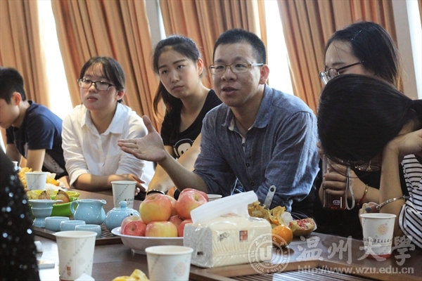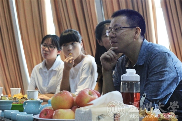 2015年9月24日下午1时在努努影院 的视野空间交流室内,艺路导航第六期师生交流会如期举行,本期特邀努努影院 黄容海老师。 人生如茶。一苦,二涩,三而甜。沐浴着茶叶所散发出的醇香,在一片氤氲中大家便开始了热络的畅谈。黄容海老师亲切的问候,诙谐的语言,带来这场无拘束的近距离座谈会。 活动开始黄容海老师首先询问了同学们生活和学习方面现状的了解,当聊到近期作业过多这个问题时,学生们都愁眉苦脸,黄容海老师首先提到了“主动学习”,黄老师说“作业虽然数量多,然而质量和态度才是更为重要的,我们应该要学会转换性思维,只要你积极主动去做,认真用心去体会,必然会感受作业带给你的收获。”并强调到时间规划的重要性,推荐大家每天给自己一个规定的时间来完成作业,花多少时间做事是由自己决定的,不要逼着自己熬通宵,同时,并举了一个例子,一个员工熬夜加班在半夜两点给老板发文件,第二天却换来老板一顿臭骂。说明认真并不是你的通行证,还需要效率和规划。老师的话如一记警钟敲响了在场的同学们。之后针对专业的问题,一场简单的交流似乎以无法满足大家的疑问,同学便直接回教室搬出了展示模型,一场直观实践的现场教学和专业指导便开始了,黄老师对同学进行了耐心的解答,在座的同学们都受益匪浅。如山涧的流水娓娓道来,意味深涵,又像是大海里的指向标引领者同学们走向更美好的明天。 时间就是如此,你不曾觉得拥有却悄然离去,不知不觉已到了尾声,收获了信心,收获了温暖。在一片欢声笑语中,座谈会也到达了尾声。同学们在这轻松愉快的氛围中恋恋不舍地离去。短短几杯茶的时间,每位同学的心仿佛被黄老师的温声细语擦去了所有尘埃,愈发干净透明,也如同被清茶洗涤,找到并确立了自己的方向。此次座谈会就圆满结束了,相信黄老的劝导和鼓励,能使同学们以积极的态度展望未来。 摄影:黄磊 通讯:周瑶