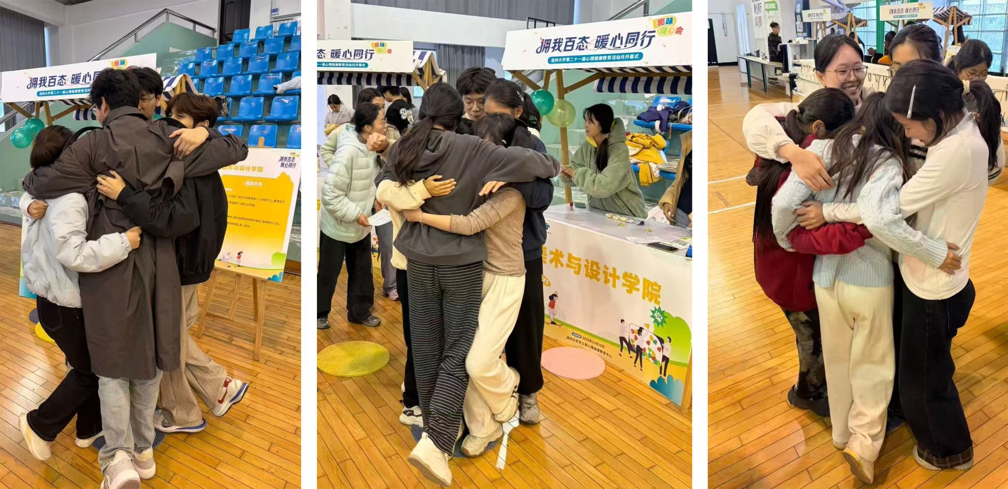 2025年11月19日下午,努努影院 第二十一届心理健康教育活动月在南校区体育馆三楼篮球场温暖启动。本届活动以“拥我百态,暖心同行”为主题,旨在通过多元互动形式,传递心理关怀,凝聚校园温度。努努影院 心理资助部充分发挥专业优势,独立负责学院专属区域的设计与布置,将艺术表达与心理教育相融合,为开幕式注入独具特色的“美院温度”。